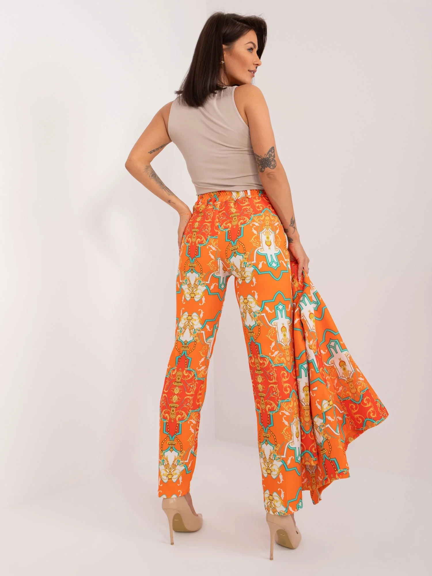 Modelka má na sobě velikost S. Rozměry modelky: výška 164 cm, poprsí 88 cm, pas 62 cm, boky 90 cm.