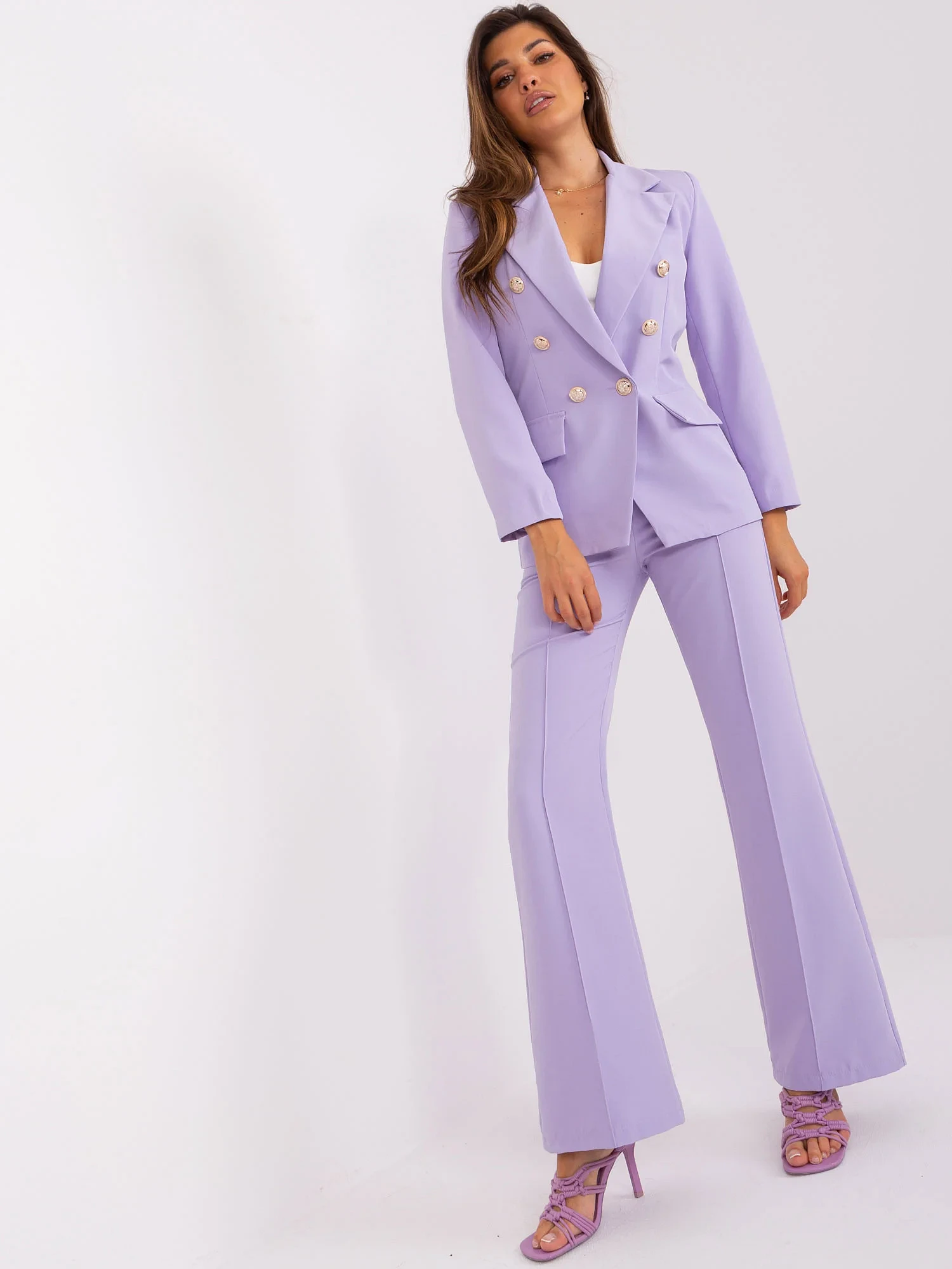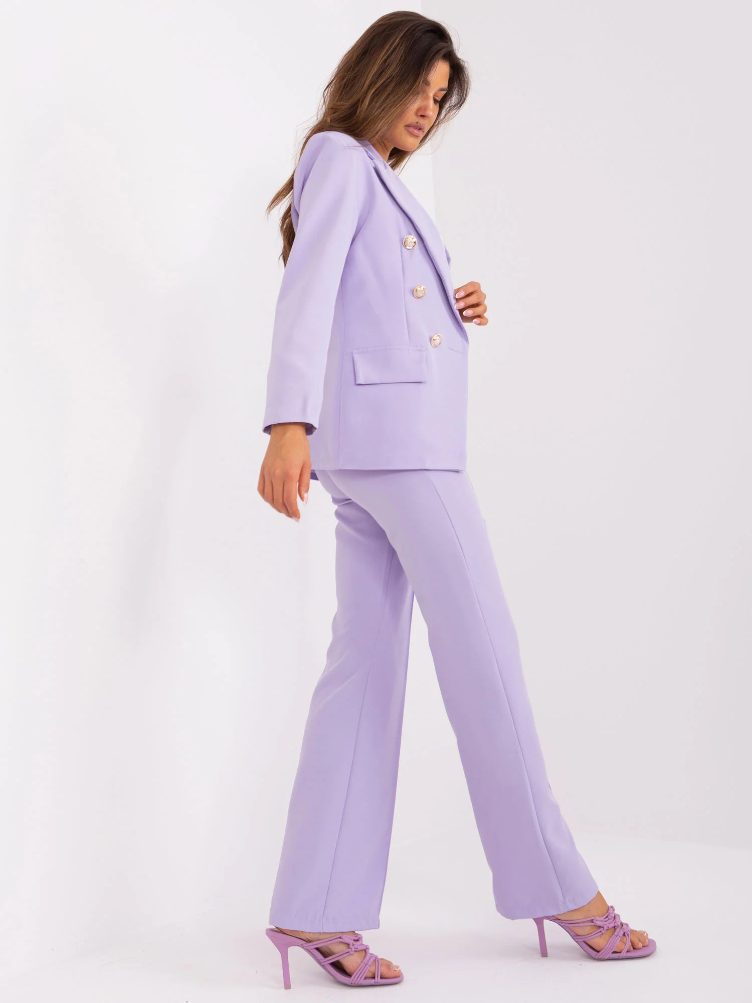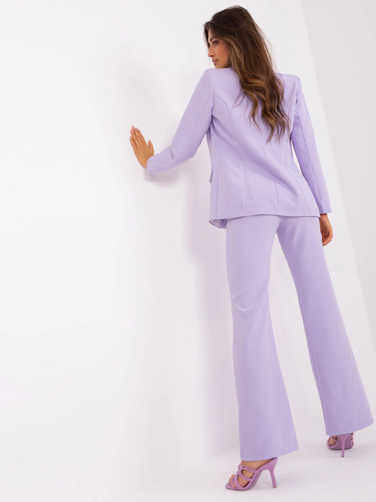 Světle fialová elegantní souprava s kalhotami .