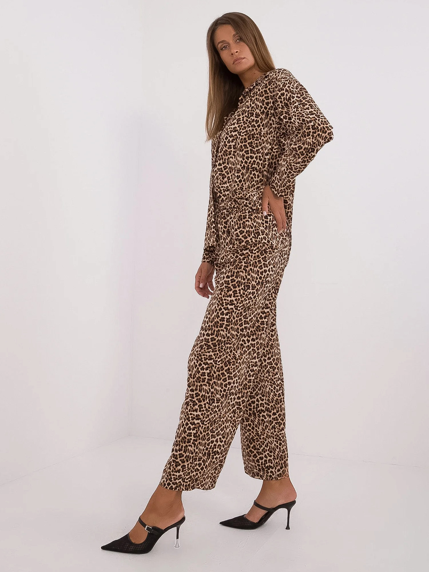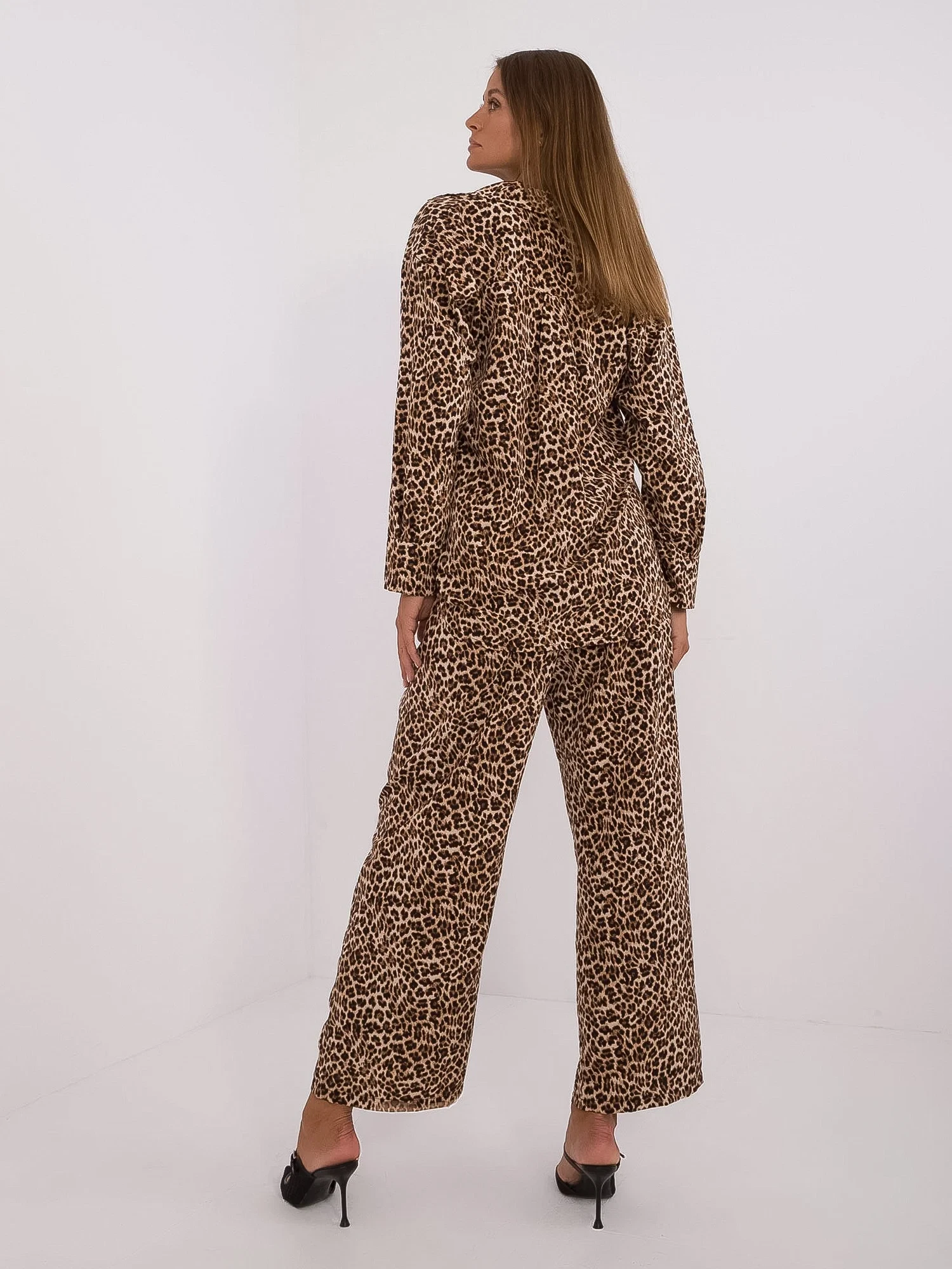 Rozměry soupravy v jedné velikosti měřené na plocho: šířka košile v podpaží - 54 cm, délka košile - 75 cm, délka rukávů - 56 cm, šířka kalhot v pase - 37 cm, výška pasu - 35 cm, délka kalhot - 97 cm.