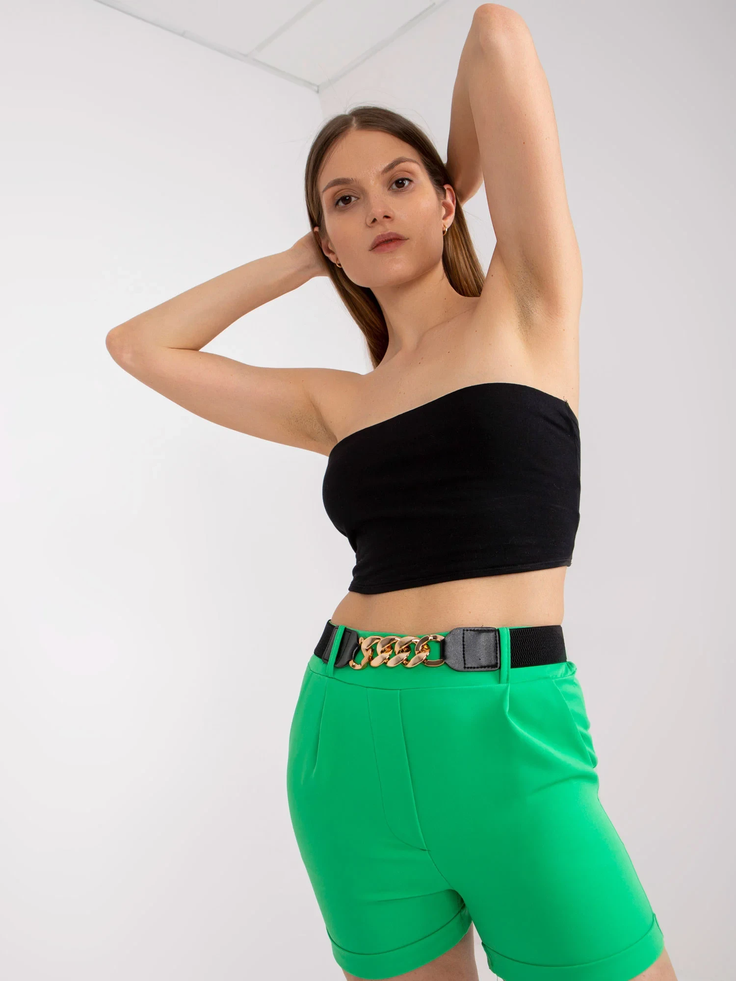 Modelka má na sobě velikost S. Rozměry modelky: výška 173 cm, prsa 82 cm, pas 62 cm, boky 91 cm.
