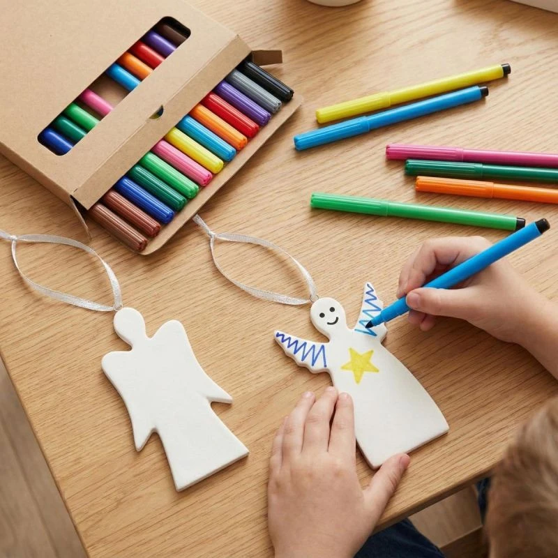 Hledáte vánoční dekoraci, díky které bude váš stromeček krásně ozdobený ozdobami, které si můžete sami namalovat? SADA DVOU DIY přívěsků s anděly k tomu bude ideální!
