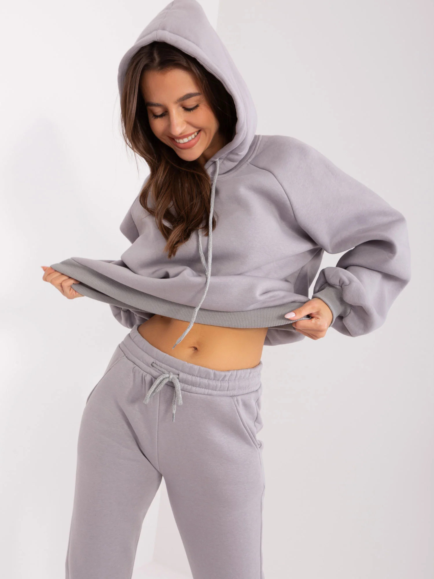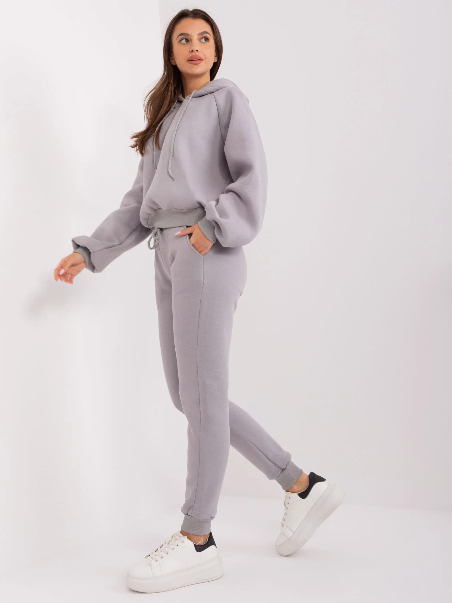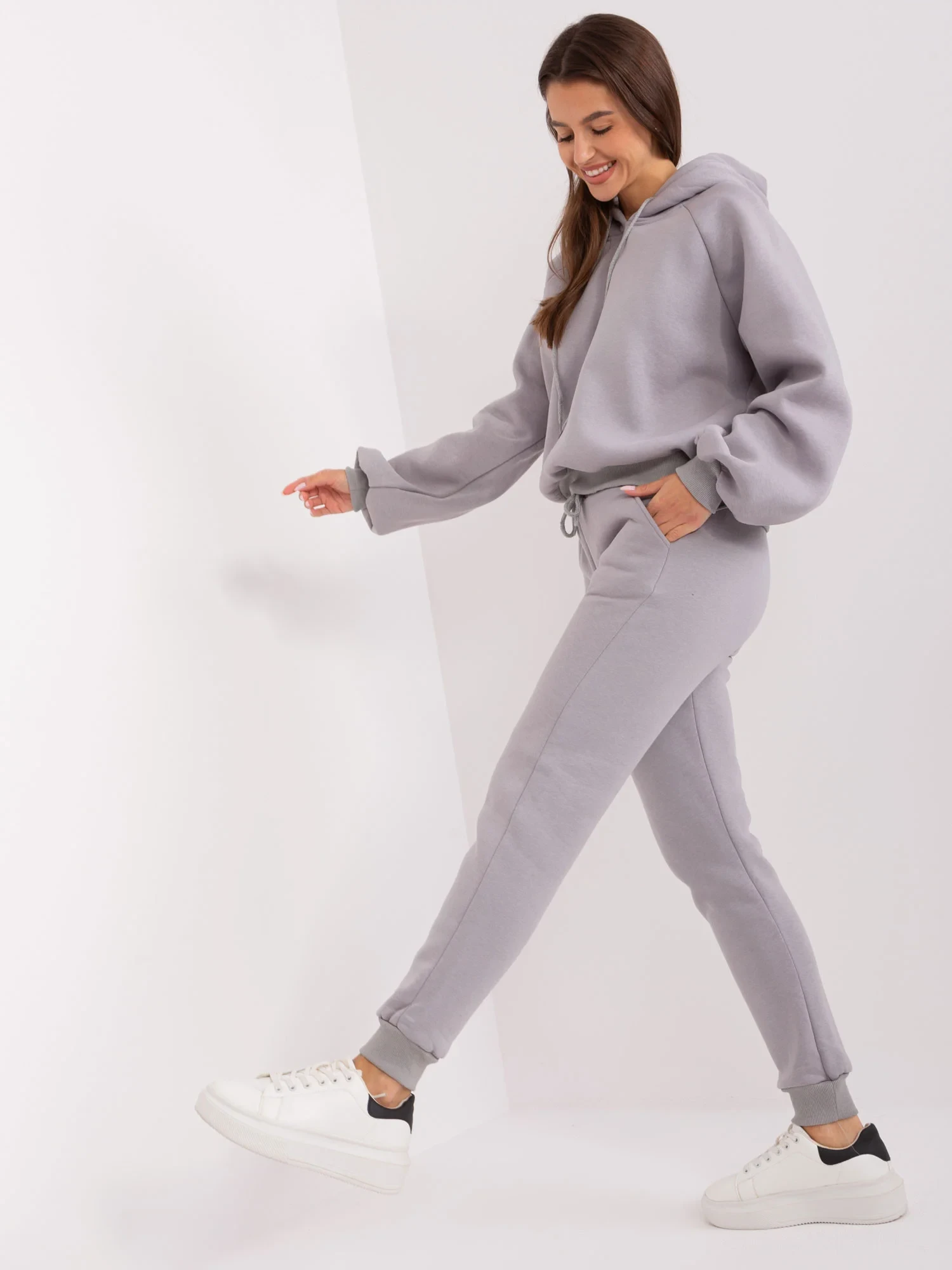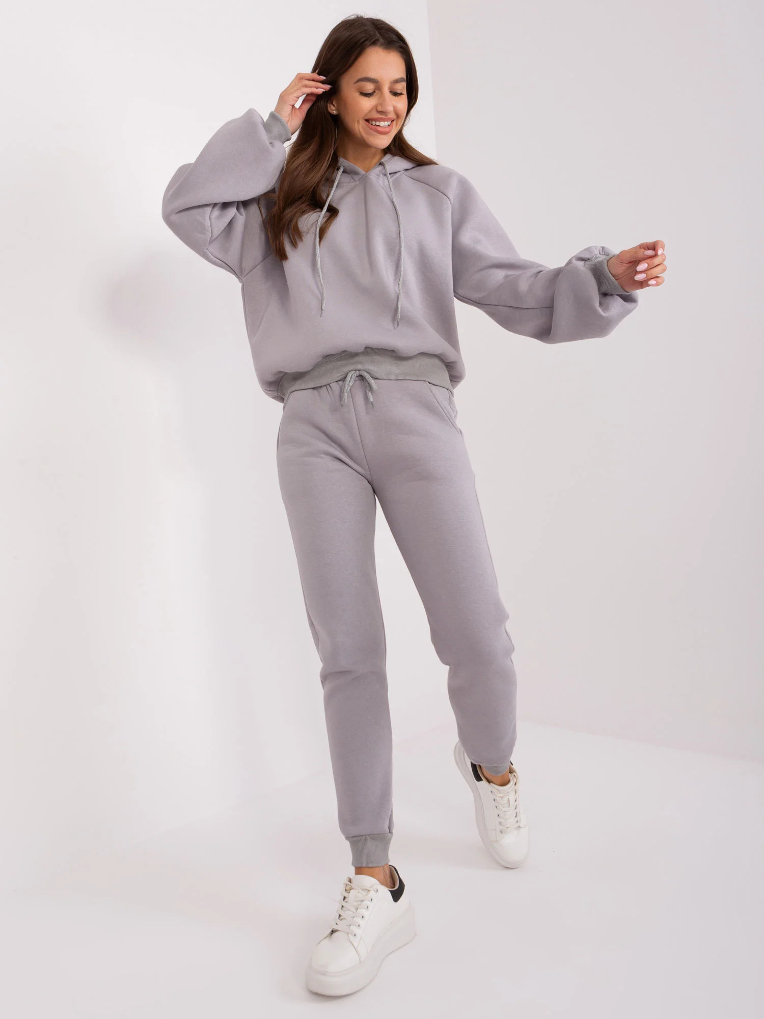 Šedá tepláková souprava s kalhotami .