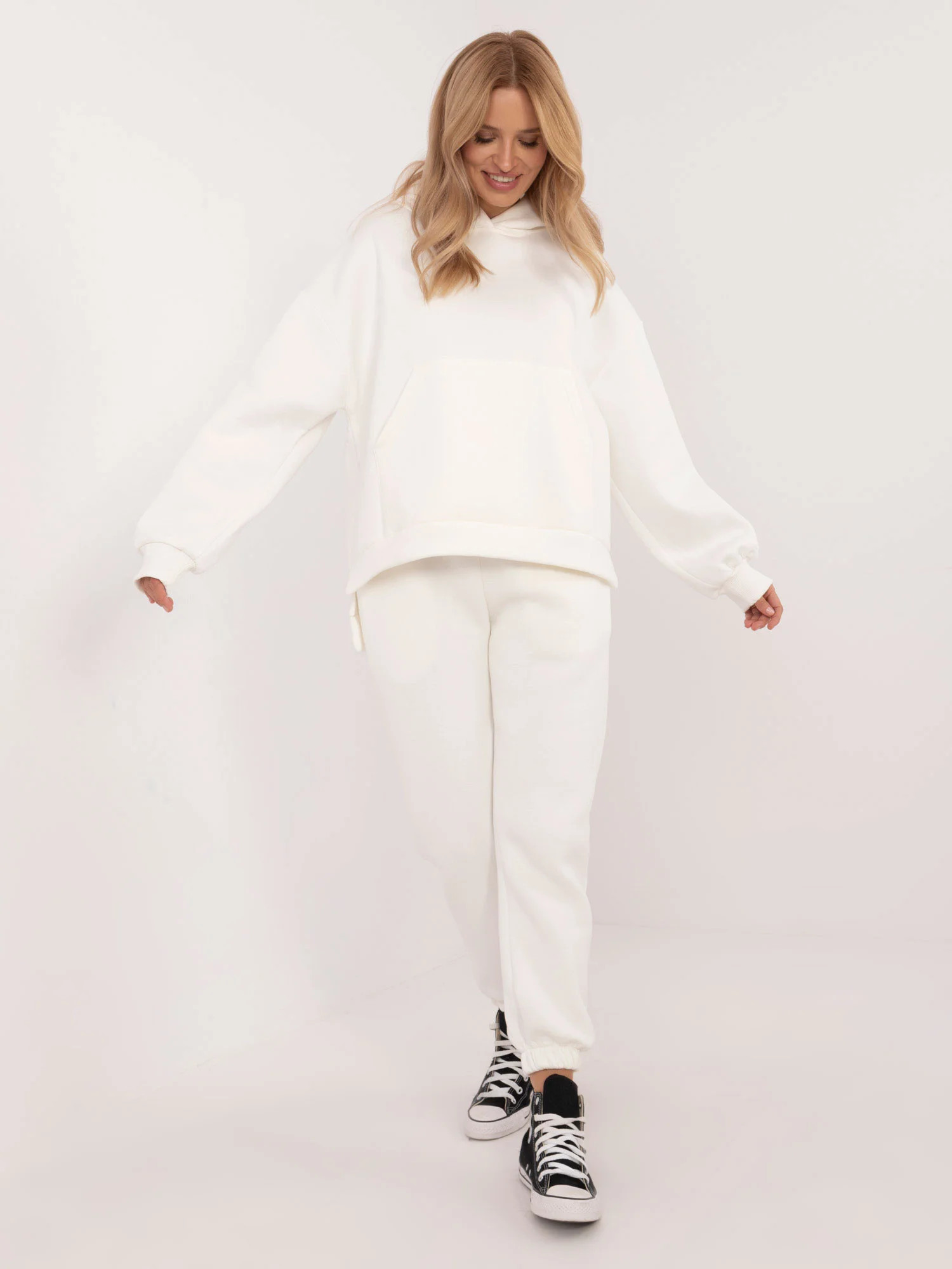 Wymiary kompletu w rozmiarze one size mierzone na płasko: szerokość bluzy pod pachami - 65 cm, długość bluzy - 74 cm, długość rękawa - 64 cm, szerokość spodni w pasie - 34 cm, długość spodni - 94 cm.