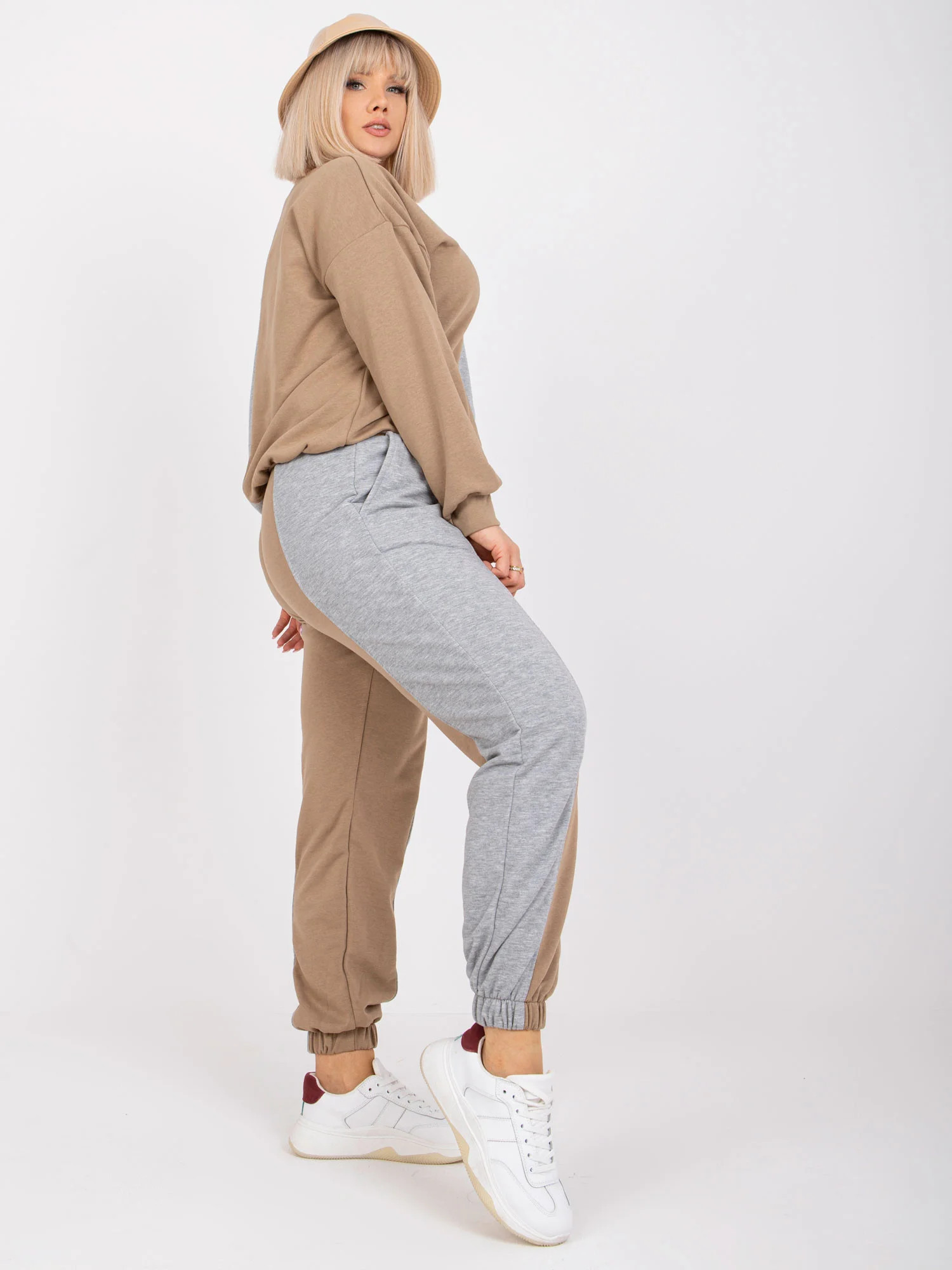 Modelka má na sobě velikost L/XL. Rozměry modelky: výška 172 cm, prsa 103 cm, pas 73 cm, boky 103 cm.