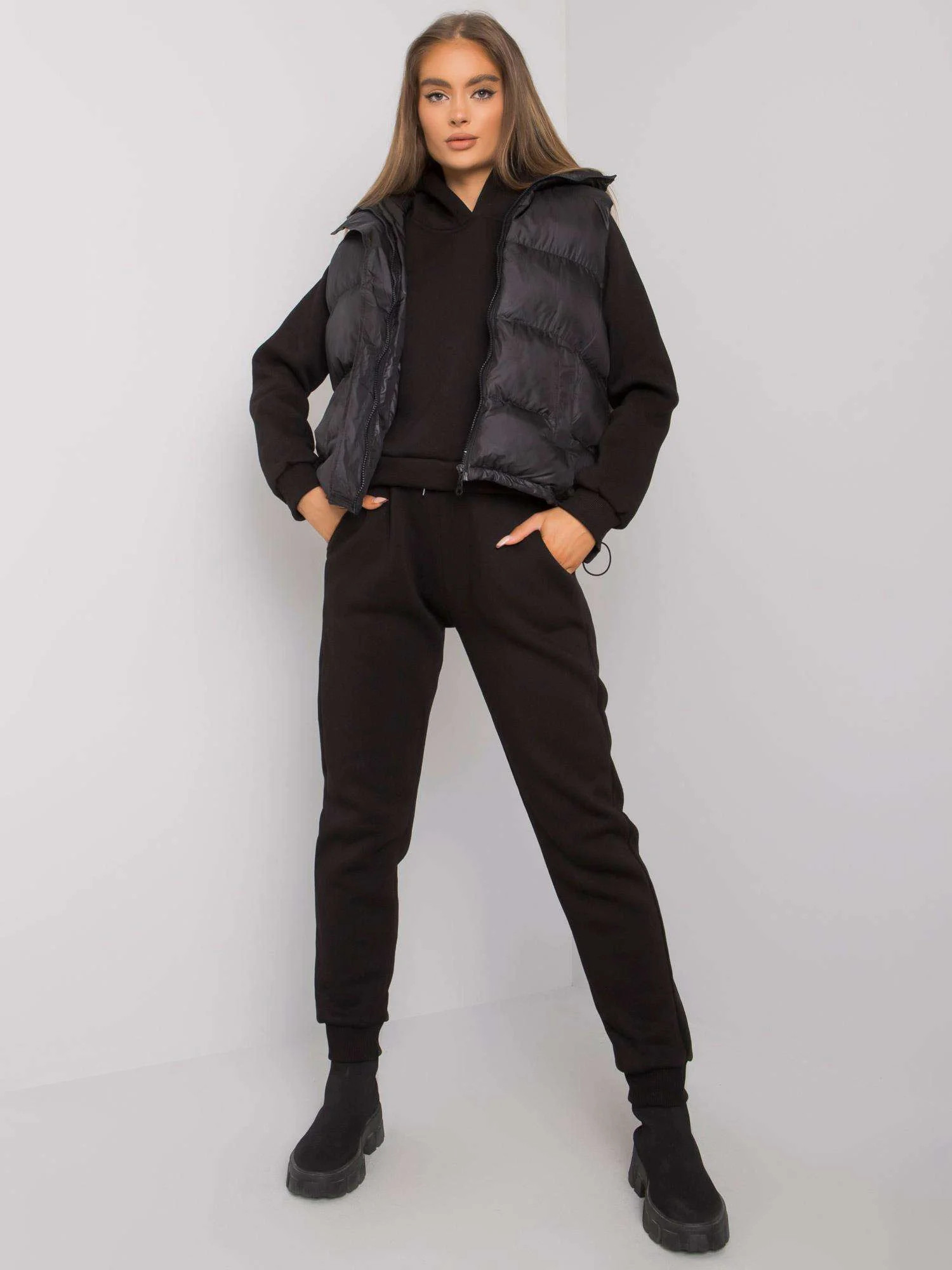 sada obsahuje: mikinu, tepláky, péřovou vestu