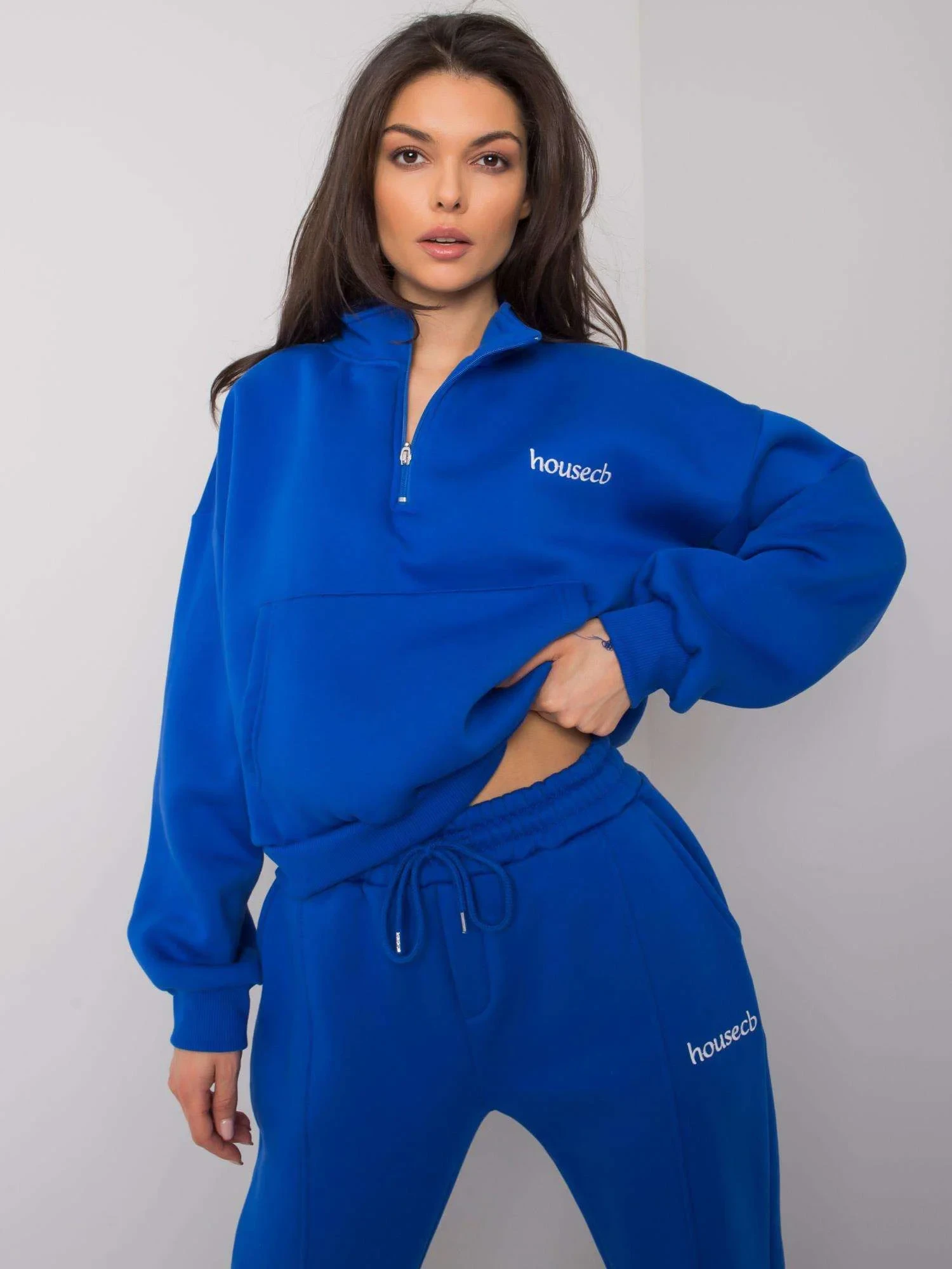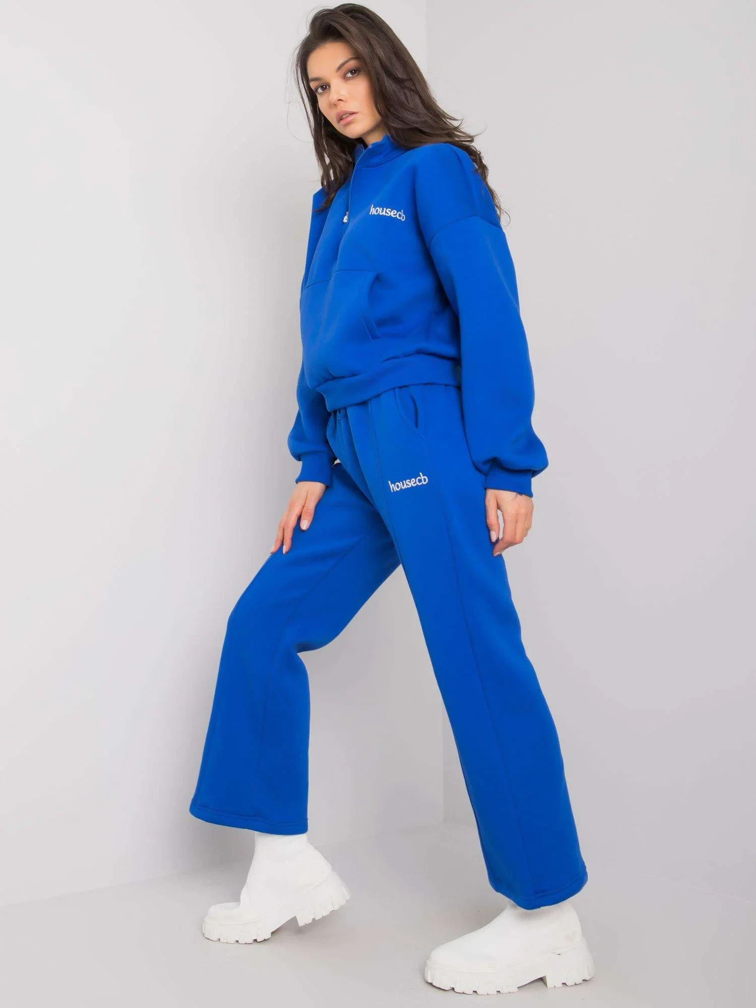 Rozměry soupravy ve velikosti S/M měřené na plocho: šířka mikiny v podpaží - 58 cm, délka rukávu - 65 cm, délka mikiny - 53 cm, šířka kalhot v pase - 38 cm, délka kalhot - 96 cm