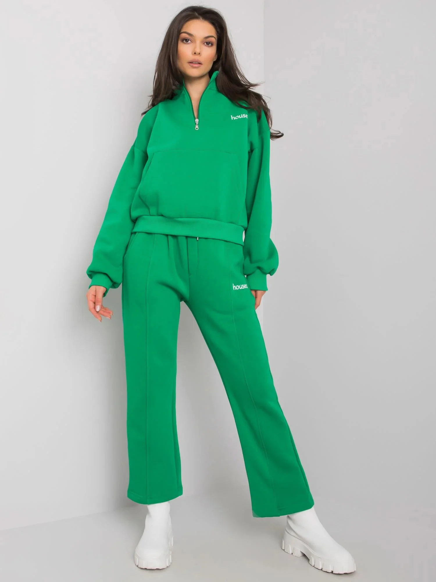 Rozměry soupravy ve velikosti S/M měřené na plocho: šířka mikiny v podpaží - 58 cm, délka rukávu - 65 cm, délka mikiny - 53 cm, šířka kalhot v pase - 38 cm, délka kalhot - 96 cm