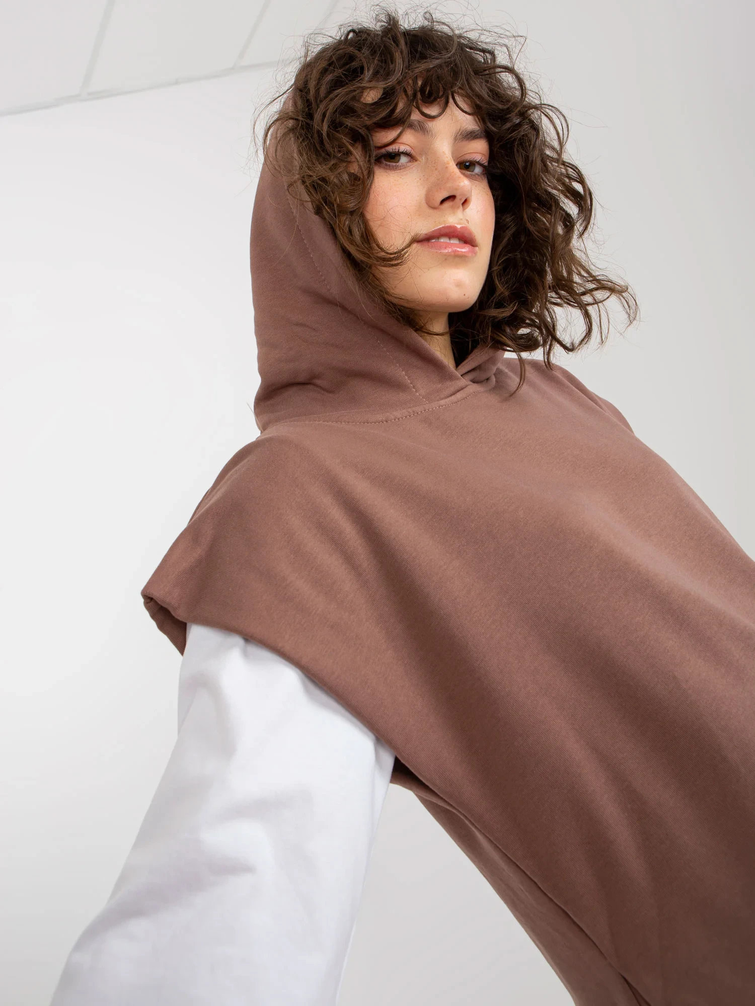 Modelka má na sobě jednu velikost. Rozměry modelky: výška 177 cm, poprsí 84 cm, pas 62 cm, boky 89 cm.