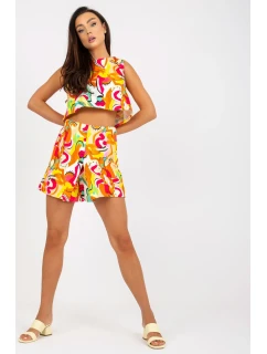 Rozměry soupravy v jedné velikosti měřené na plocho: šířka halenky v podpaží - 70 cm délka rukávů - 64 cm, délka halenky - 71 cm, šířka šortek v pase - 36 cm, výška pasu - 34 cm, délka šortek - 44 cm.