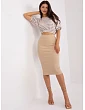 Tmavě béžový ležérní komplet s pruhovanou halenkou .