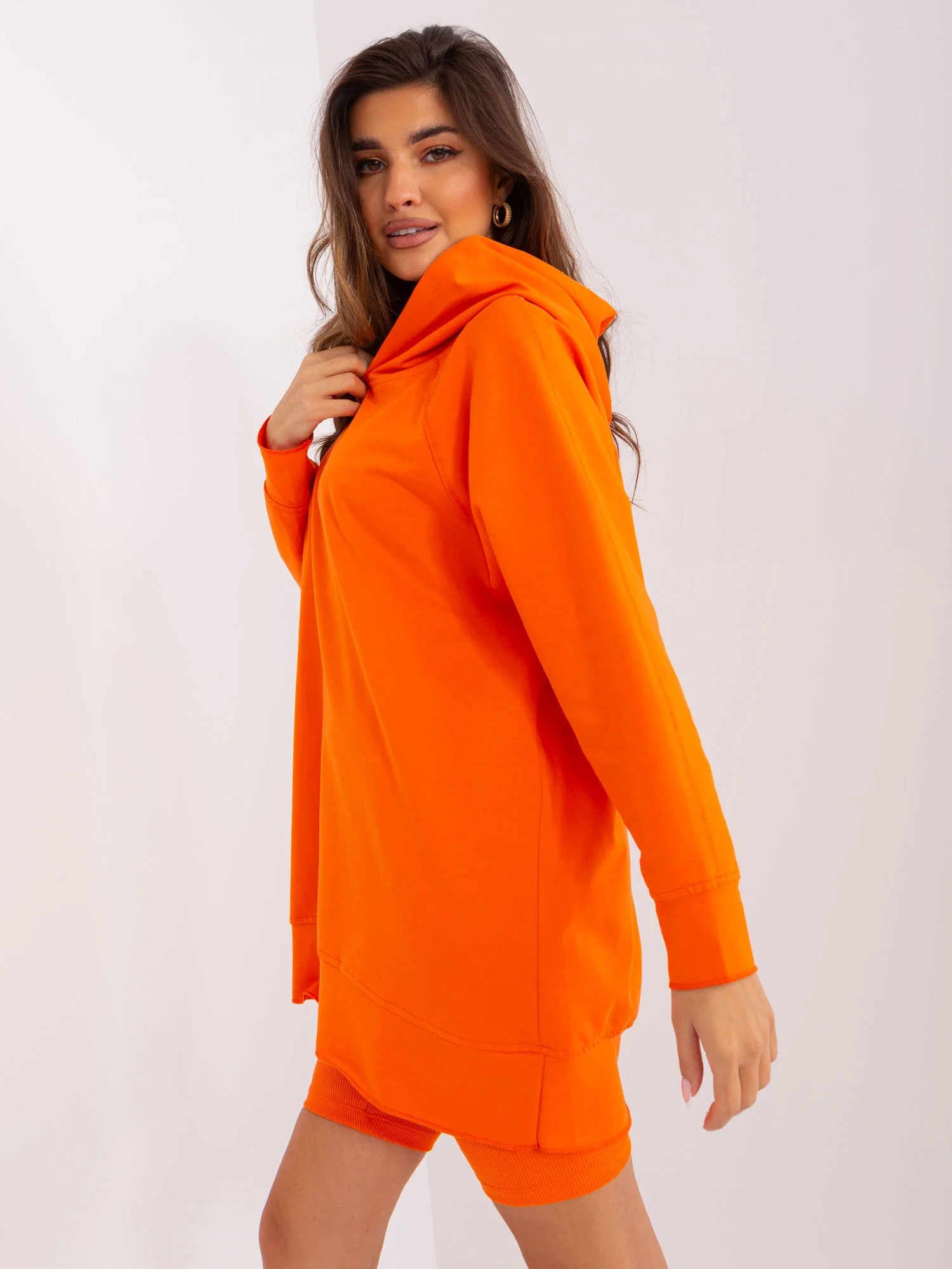 Oranžový ležérní set s šortkami.
