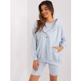Světle modrá melanžová ležérní třídílná souprava s mikinou.