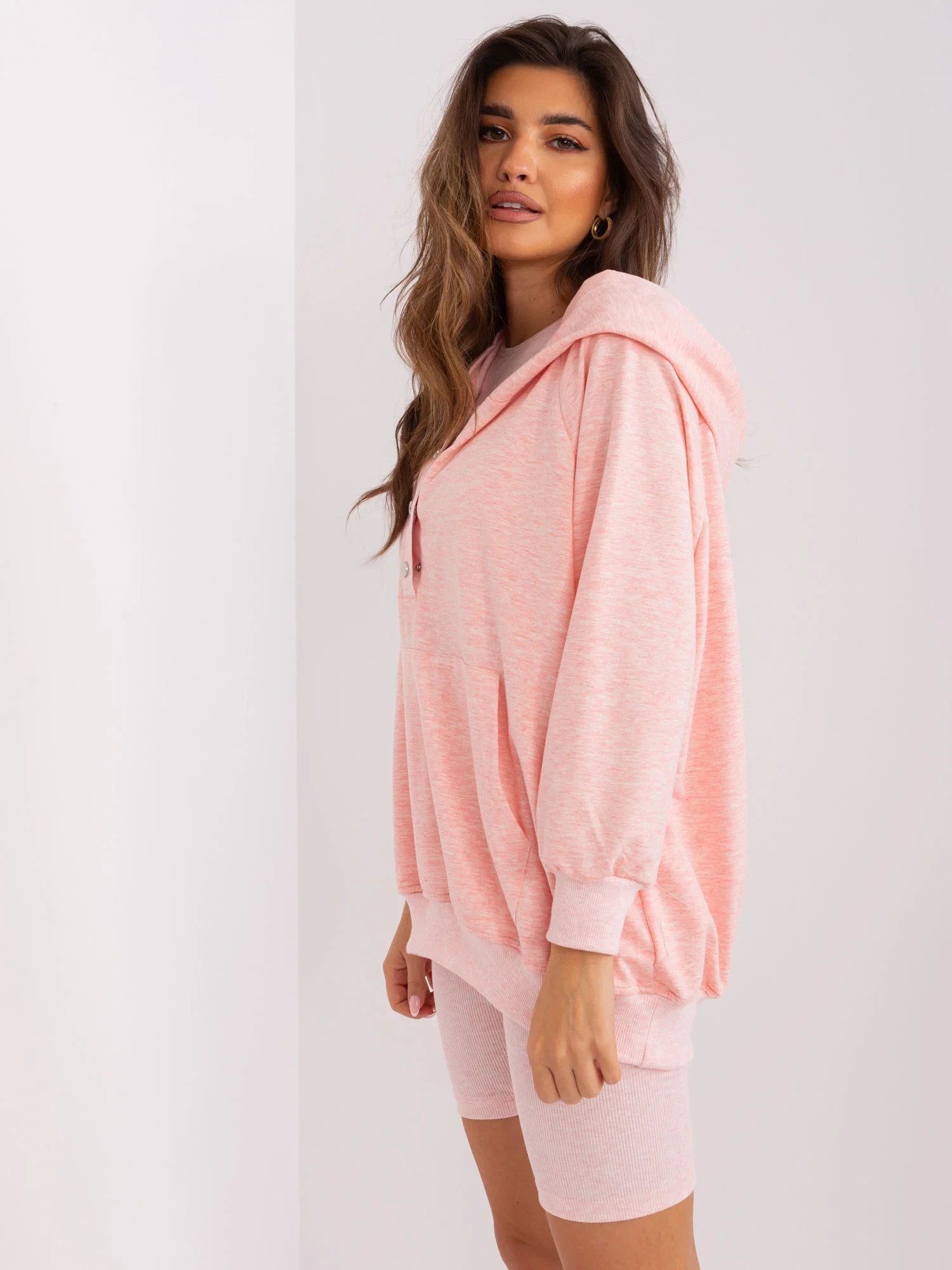 Světle růžová melanžová ležérní souprava s mikinou.