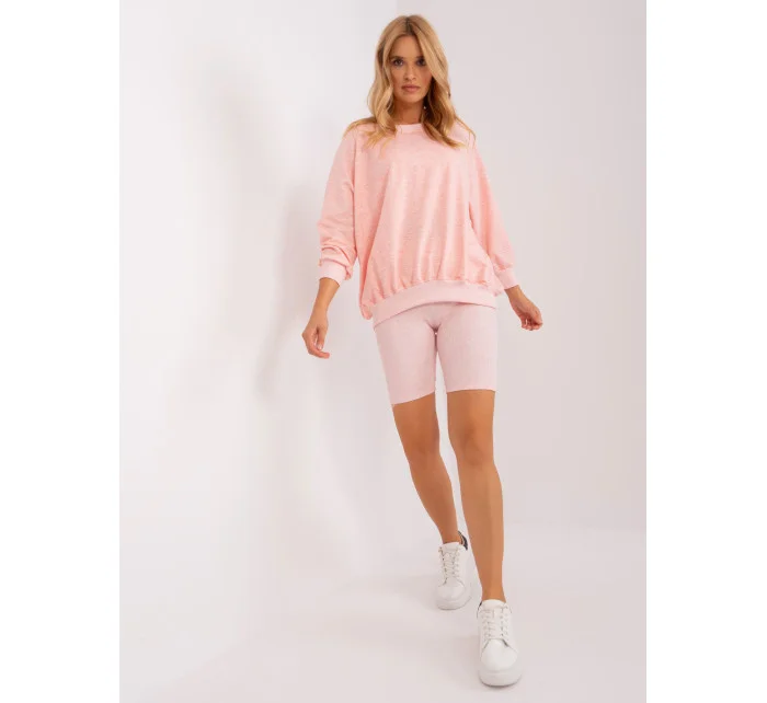 Světle růžová melanžová třídílná souprava s volnou mikinou.