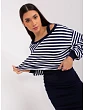 Béžovo-bílá základní souprava s pruhovanou halenkou .