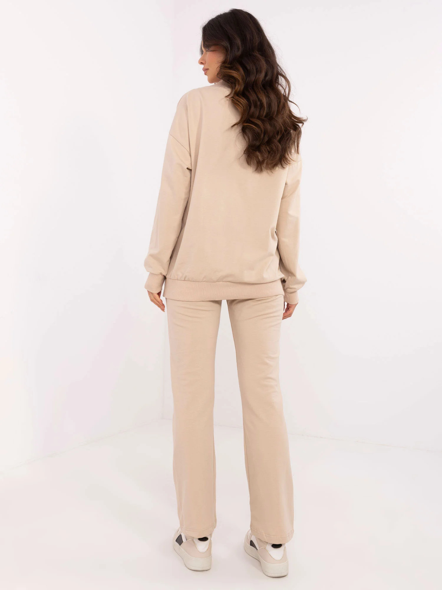 Wymiary bluzy w rozmiarze one size mierzone na płasko: szerokość bluzy pod pachami - 64 cm, długość bluzy - 74 cm, długość rękawa - 54 cm (od szwu), obwód w biodrach - 92 cm.