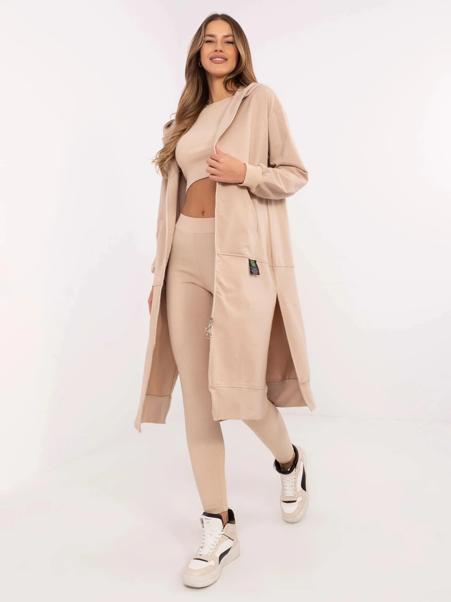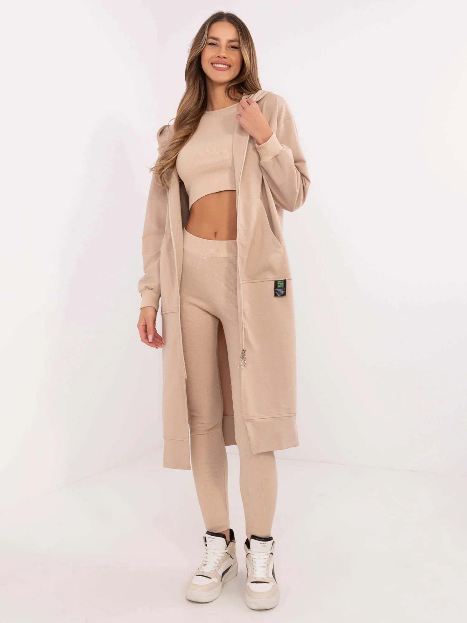 složení materiálu halenky: 72 % bavlna, 22 % polyester, 6 % elastan; složení materiálu legín a topu: 90 % bavlna, 10 % elastan