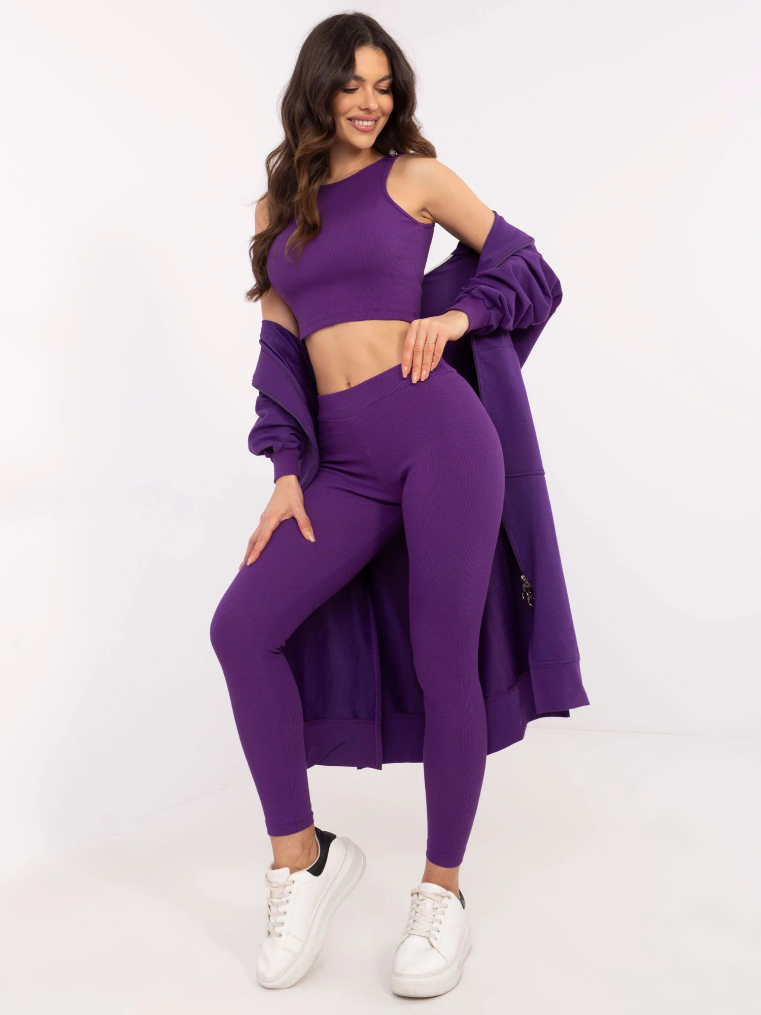 složení materiálu halenky: 72 % bavlna, 22 % polyester, 6 % elastan; složení materiálu legín a topu: 90 % bavlna, 10 % elastan