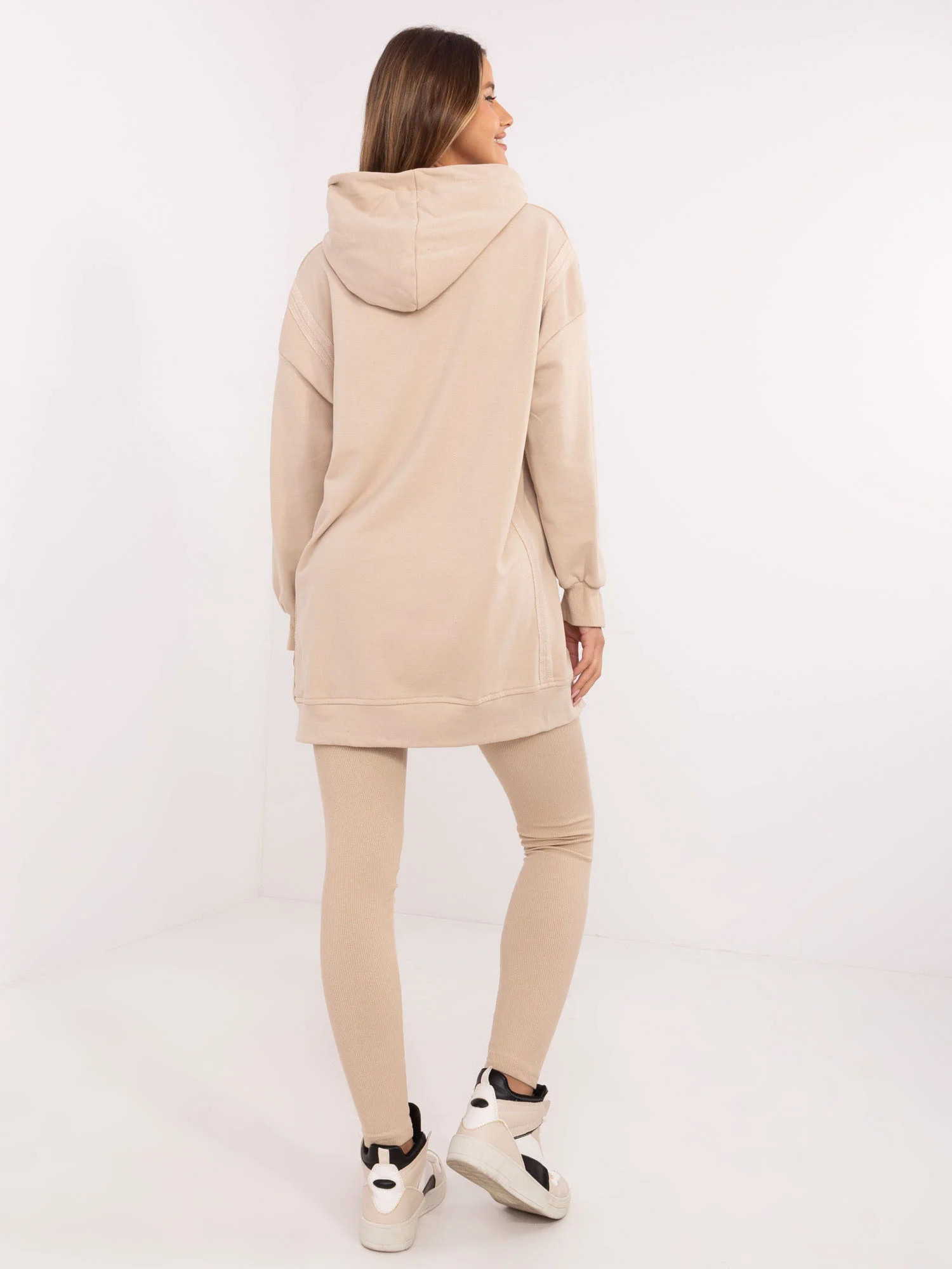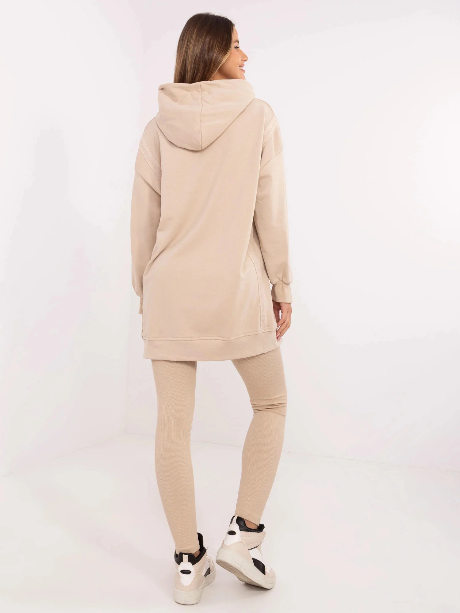 Rozměry mikiny v jedné velikosti měřené na plocho: šířka mikiny v podpaží - 64 cm, délka mikiny - 75 cm (vpředu), délka mikiny - 83 cm (vzadu), délka rukávu - 48 cm (od švu), obvod v bocích - 124 cm.