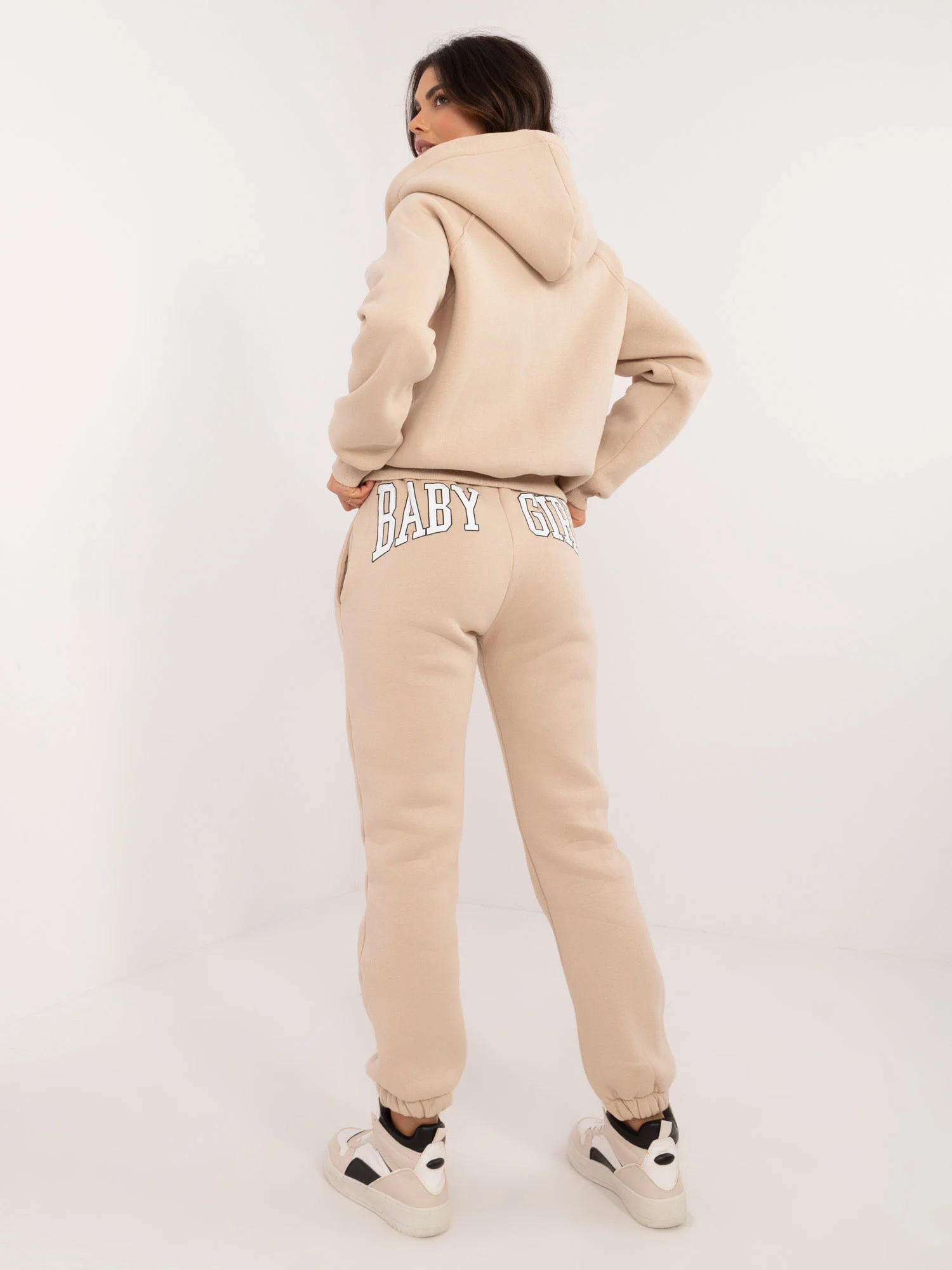 Wymiary kurtki w rozmiarze one size mierzone na płasko: szerokość pod pachami - 58 cm, długość bluzy - 58 cm, długość rękawa - 67 cm, szerokość topu pachami - 42 cm, długość topu - 50 cm, szerokość spodni w pasie - 33 cm, długość spodni - 98 cm .