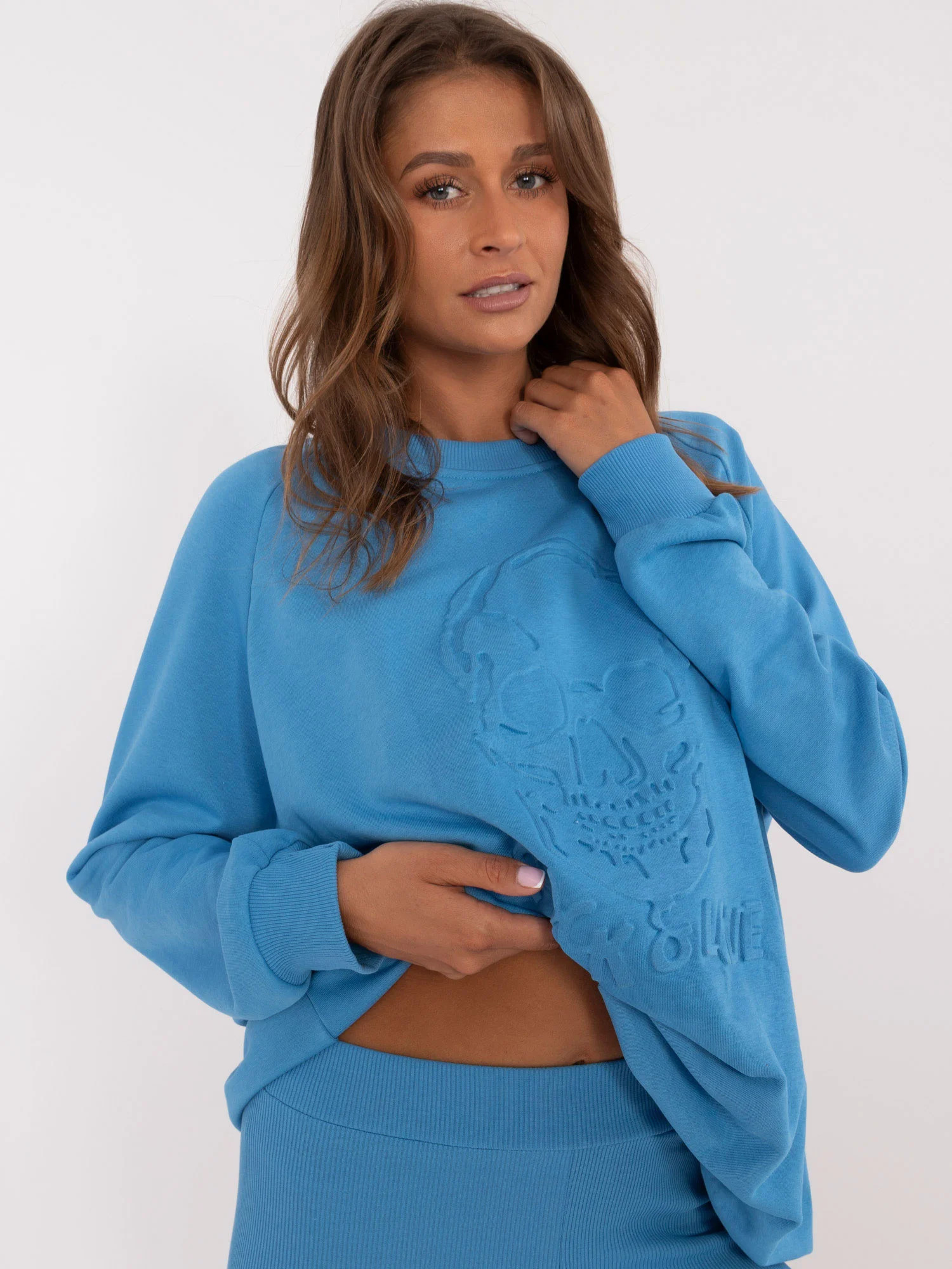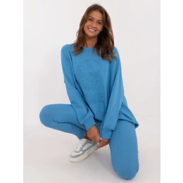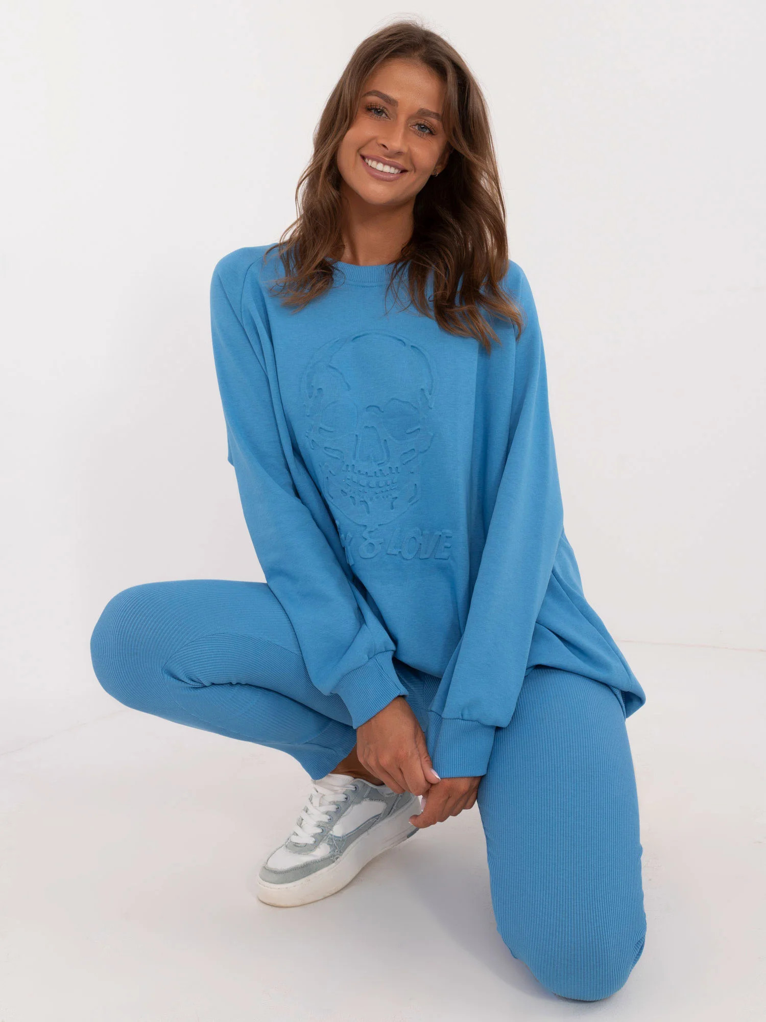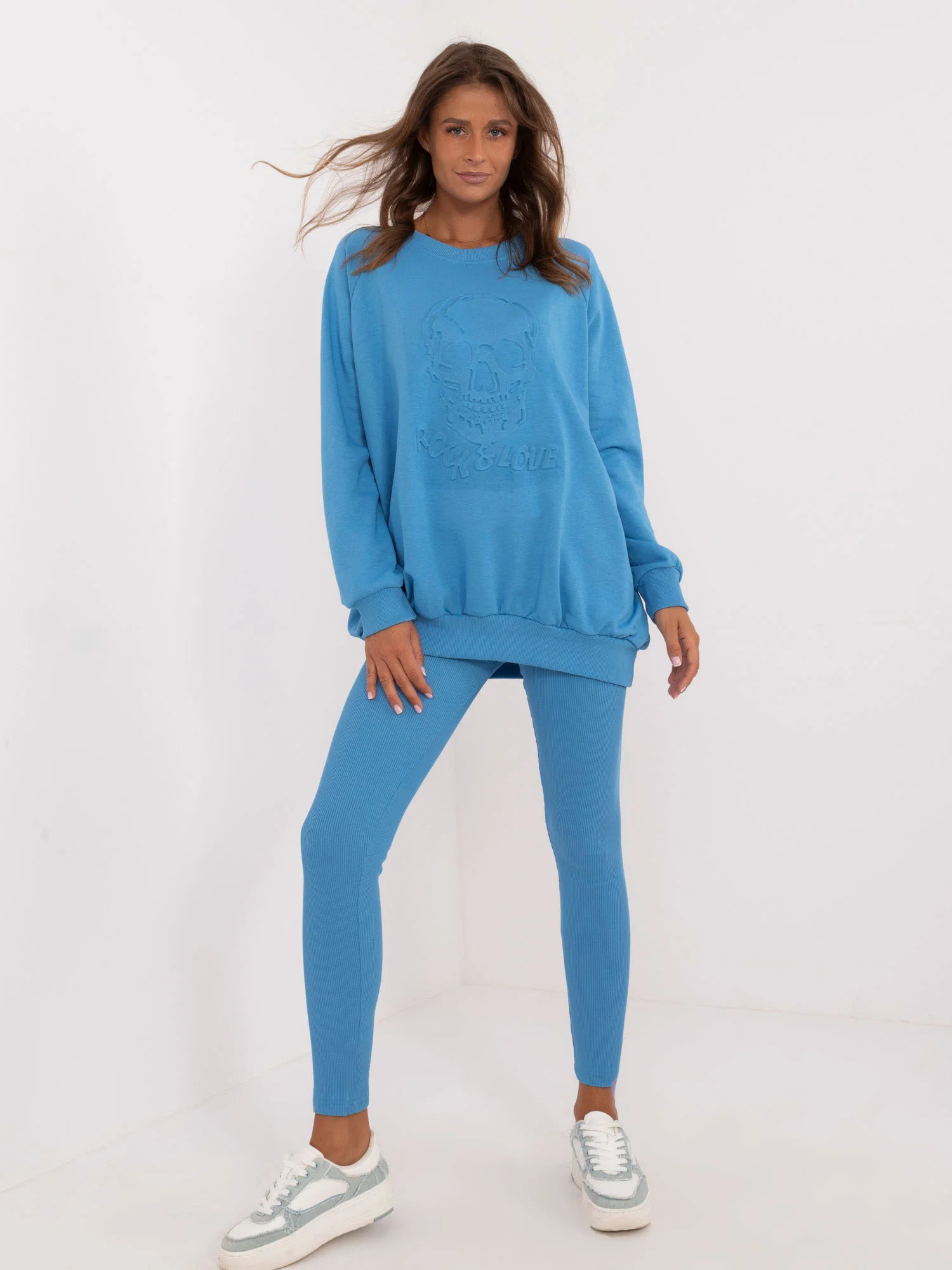 Rozměry soupravy v jedné velikosti měřené na plocho: šířka halenky v podpaží - 70 cm, délka halenky - 74 cm, délka rukávů - 64 cm, šířka legín v pase - 30 cm, výška pasu - 28 cm, délka legín - 98 cm.