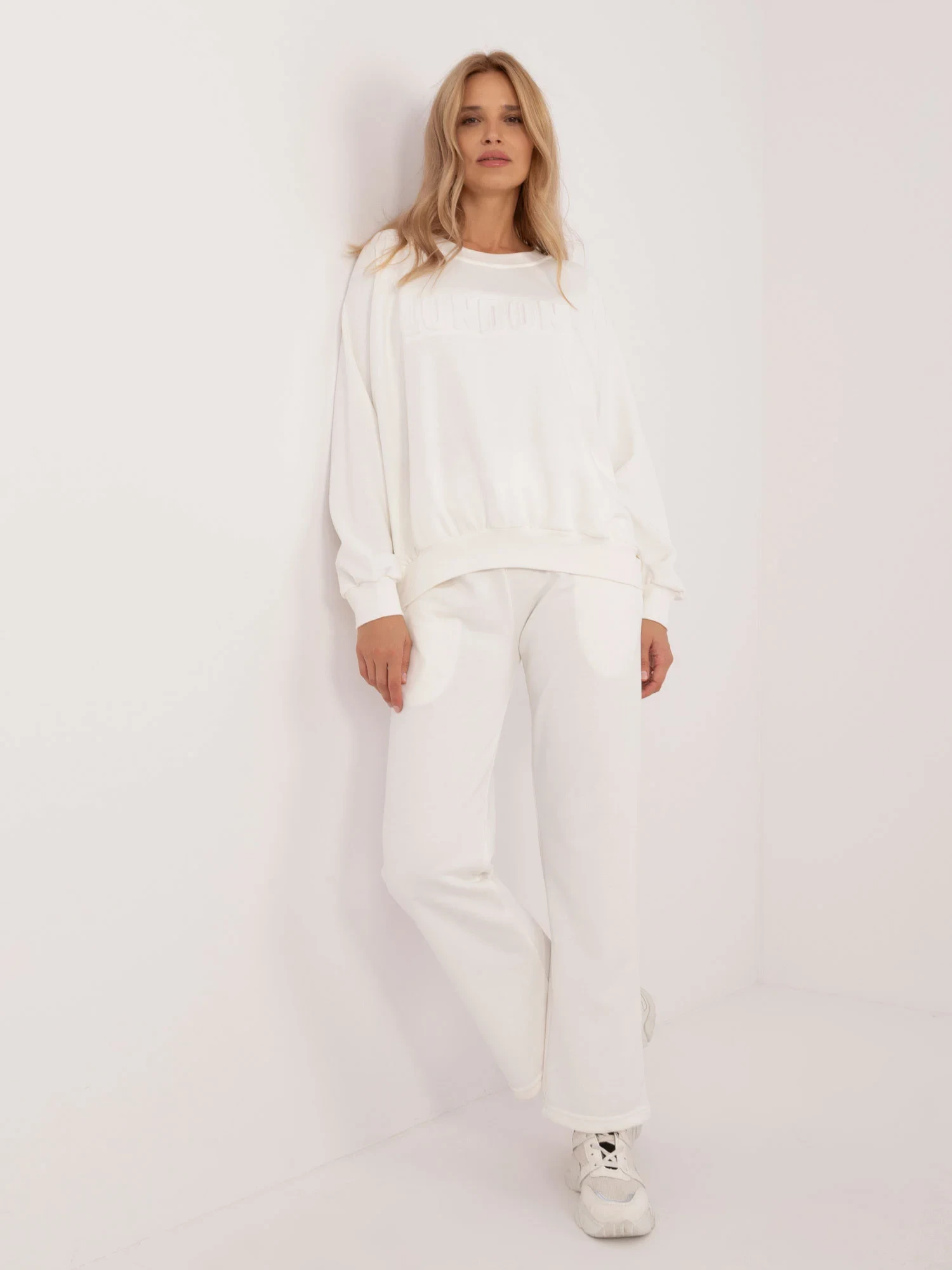 Rozměry soupravy v jedné velikosti měřené na plocho: šířka halenky v podpaží - 68 cm, délka halenky - 67 cm, délka rukávů - 64 cm, šířka kalhot v pase - 33 cm, výška stavu - 34 cm, délka kalhot - 105 cm.