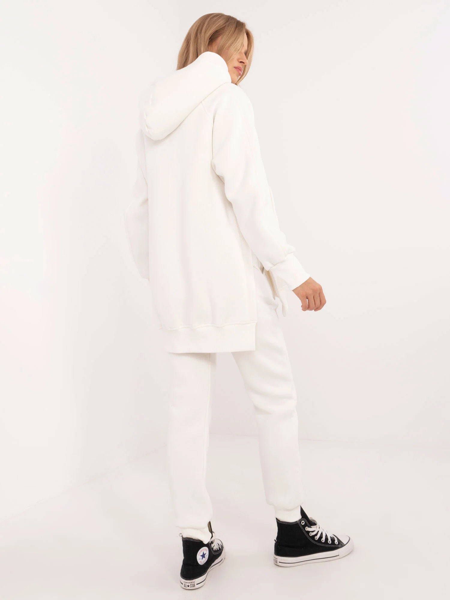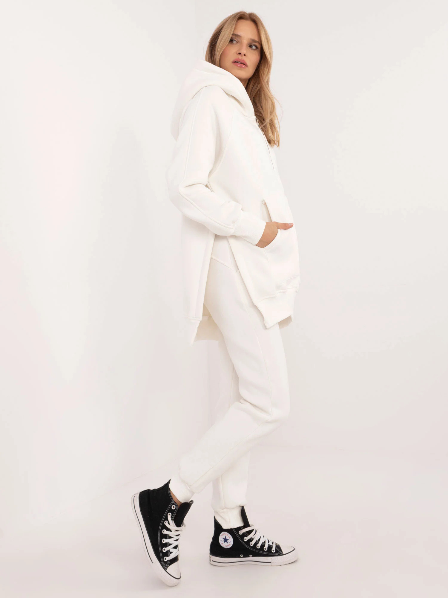 Wymiary kompletu w rozmiarze one size mierzone na płasko: szerokość pod pachami - 62 cm, długość bluzy - 77 cm, długość rękawa - 63 cm, szerokość spodni w pasie - 32 cm (na płasko), szerokość spodni w pasie - 44 cm (po rozciągnięciu), długość spodni - 99 cm .