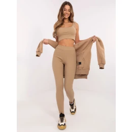 skład materiału bluzy: 70% bawełna, 30% poliester; skład materiału legginsów i topu: 90% bawełna, 10% elastan