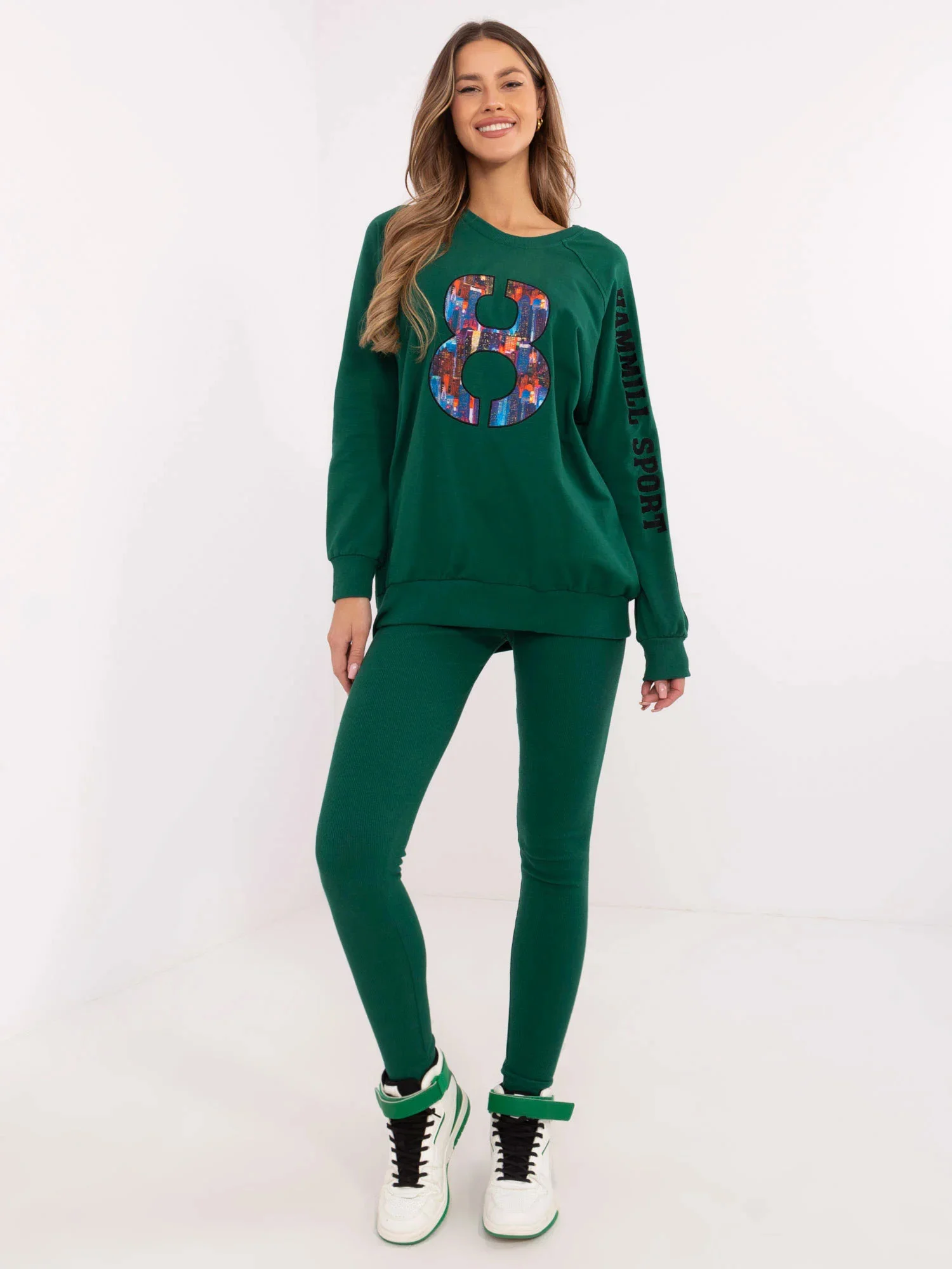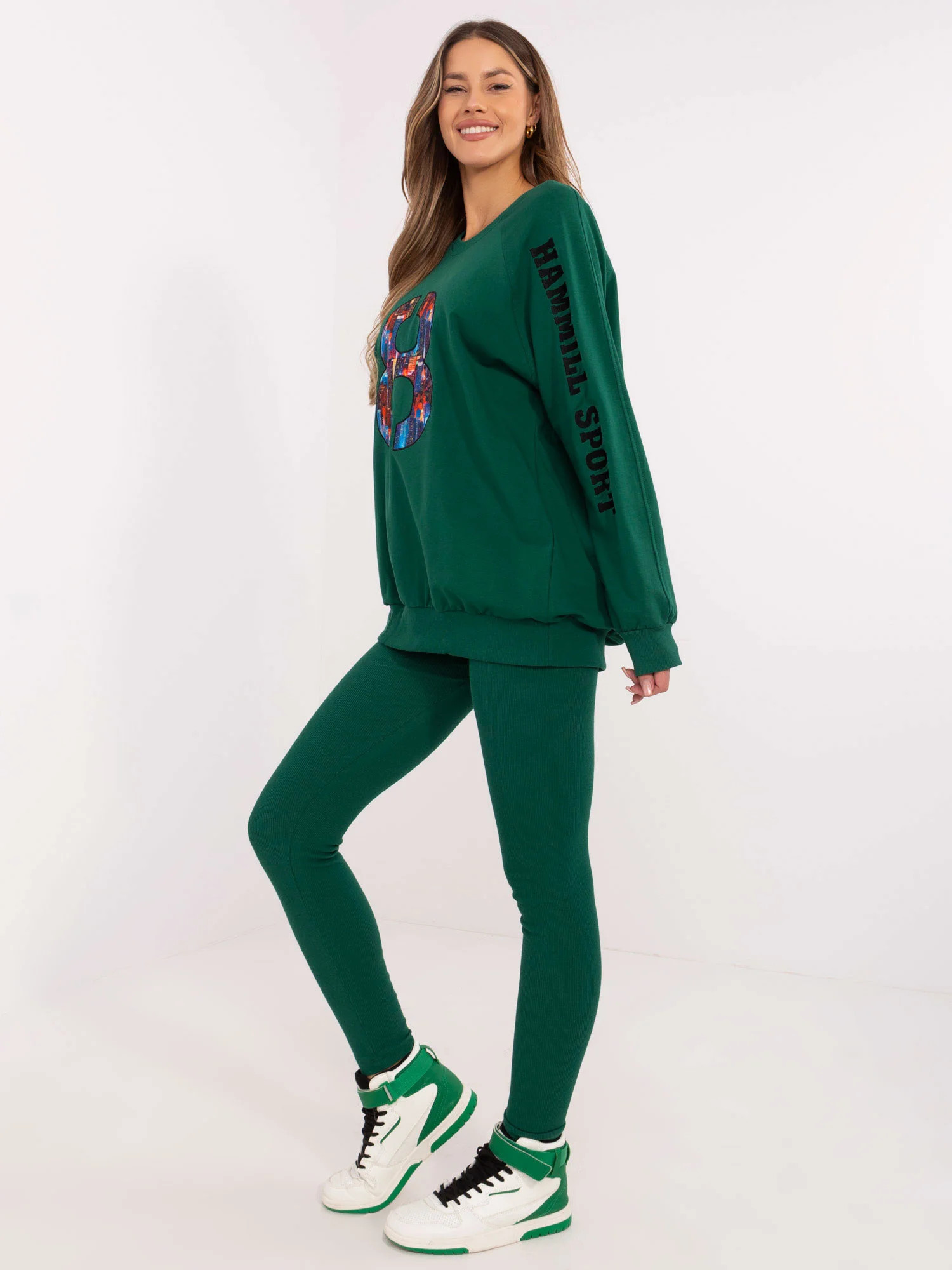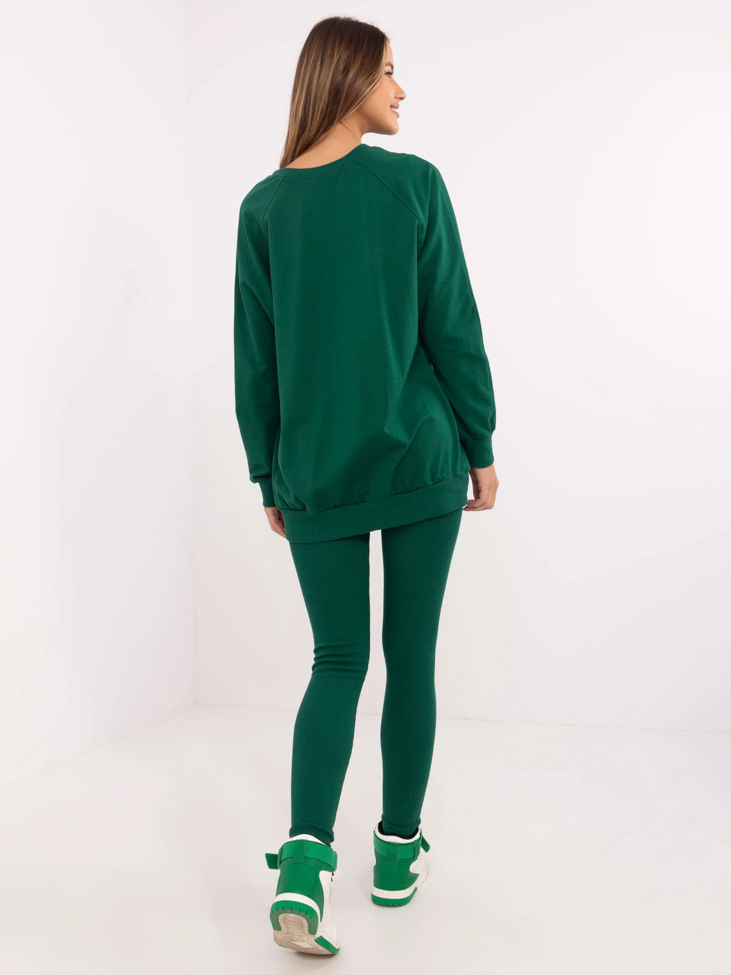 skład materiału bluzy: 72% bawełna, 22% poliester, 6% elastan; skład materiału legginsów: 90% bawełna, 10% elastan