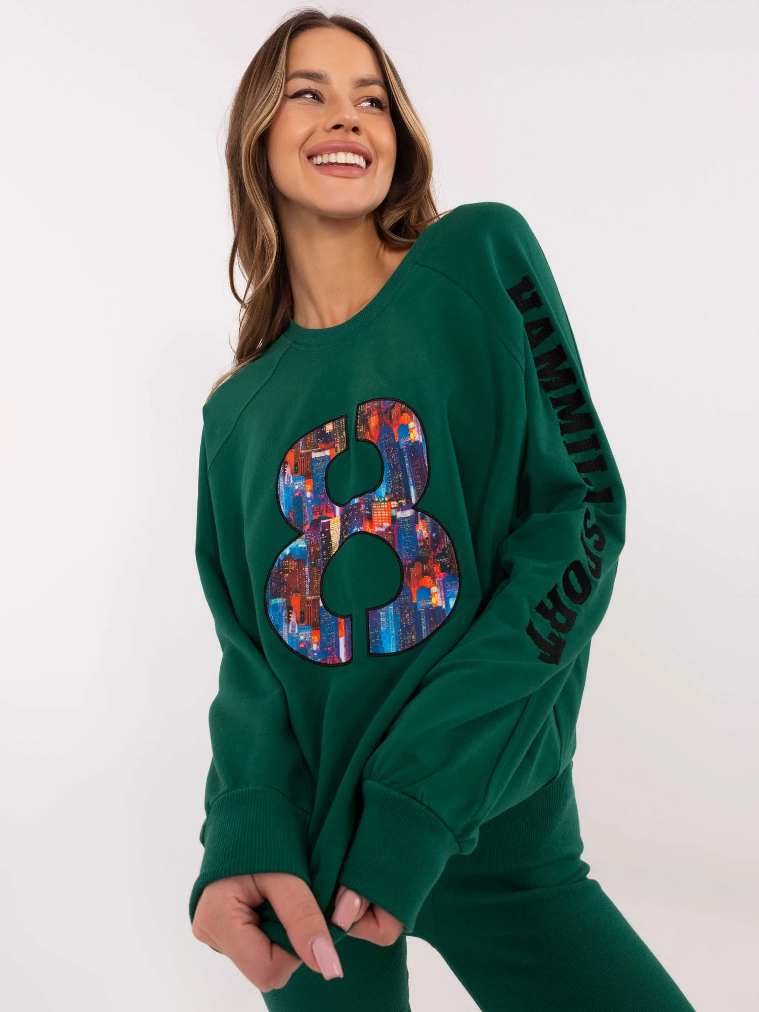 Wymiary bluzy w rozmiarze one size mierzone na płasko: szerokość bluzy pod pachami - 62 cm, długość bluzy - 74 cm, długość rękawa - 43 cm (od pachy), obwód w biodrach - 110 cm.