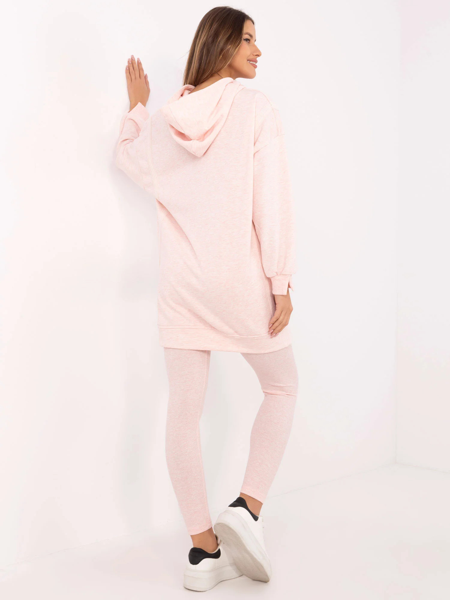 skład materiału bluzy: 70% bawełna, 30% poliester; skład materiału legginsów: 90% bawełna, 10% elastan