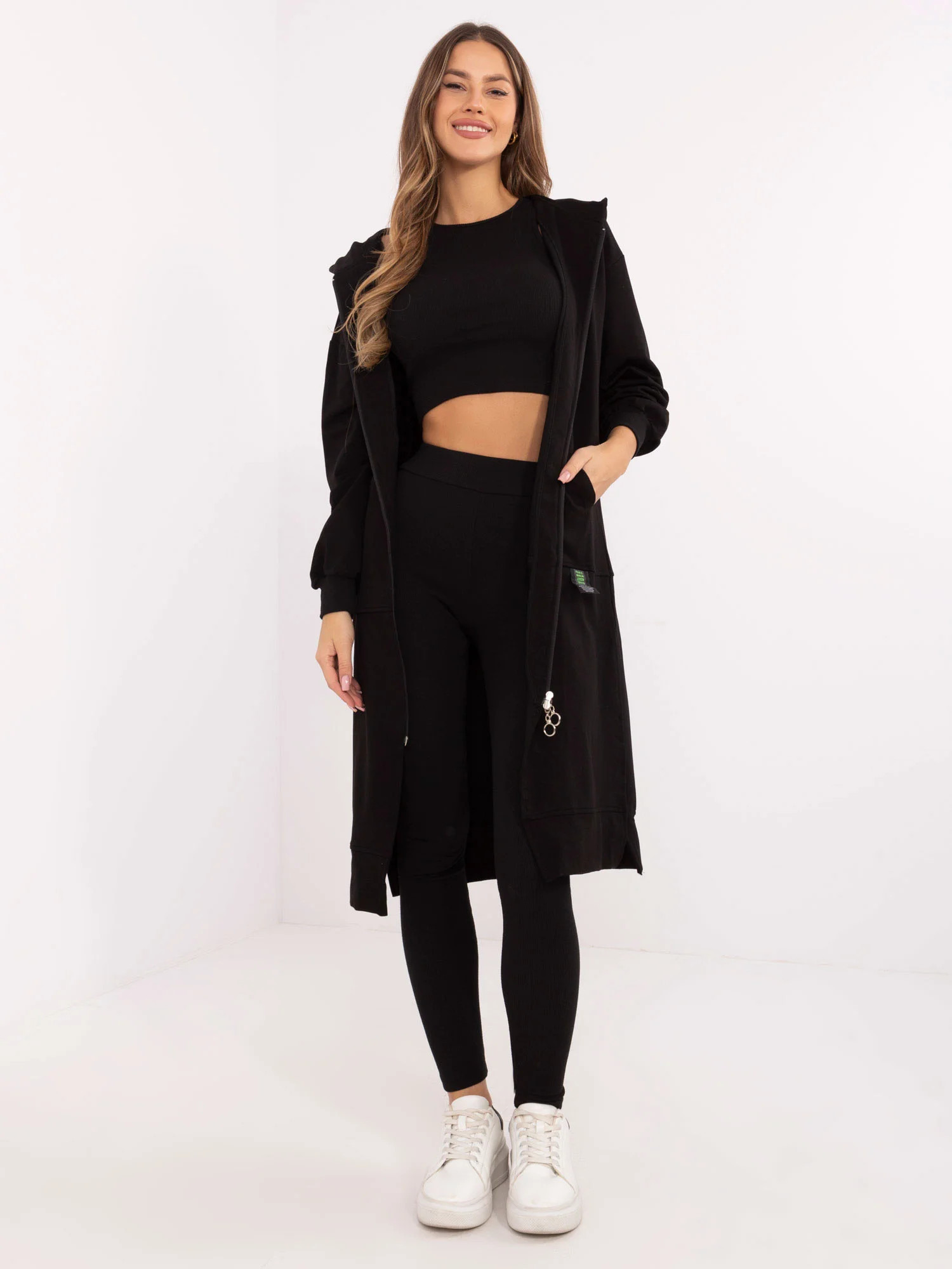 skład materiału bluzy: 72% bawełna, 22% poliester, 6% elastan; skład materiału legginsów i topu: 90% bawełna, 10% elastan