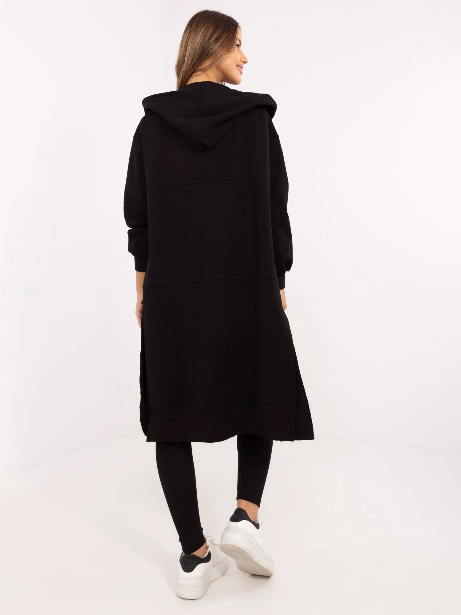 Wymiary bluzy w rozmiarze one size mierzone na płasko: szerokość bluzy pod pachami - 57 cm, długość bluzy - 107 cm, długość rękawa - 52 cm, obwód w biodrach - 108 cm.