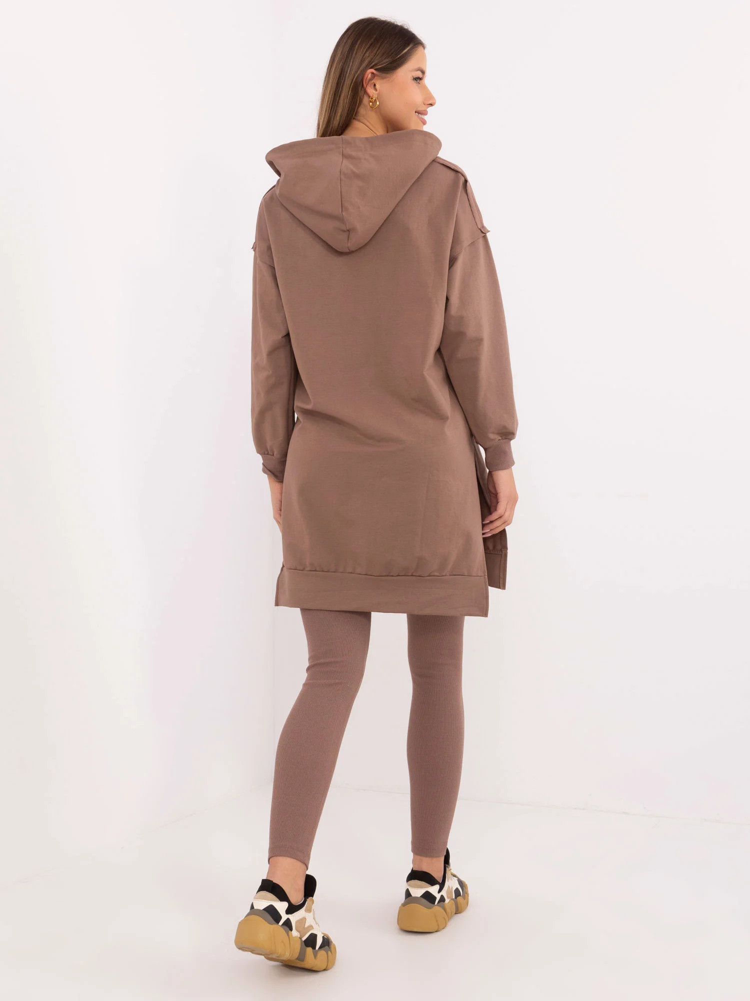 Wymiary bluzy w rozmiarze one size mierzone na płasko: szerokość bluzy pod pachami - 59 cm, długość bluzy - 94 cm, długość rękawa - 50 cm (od szwu), obwód w biodrach - 108 cm.