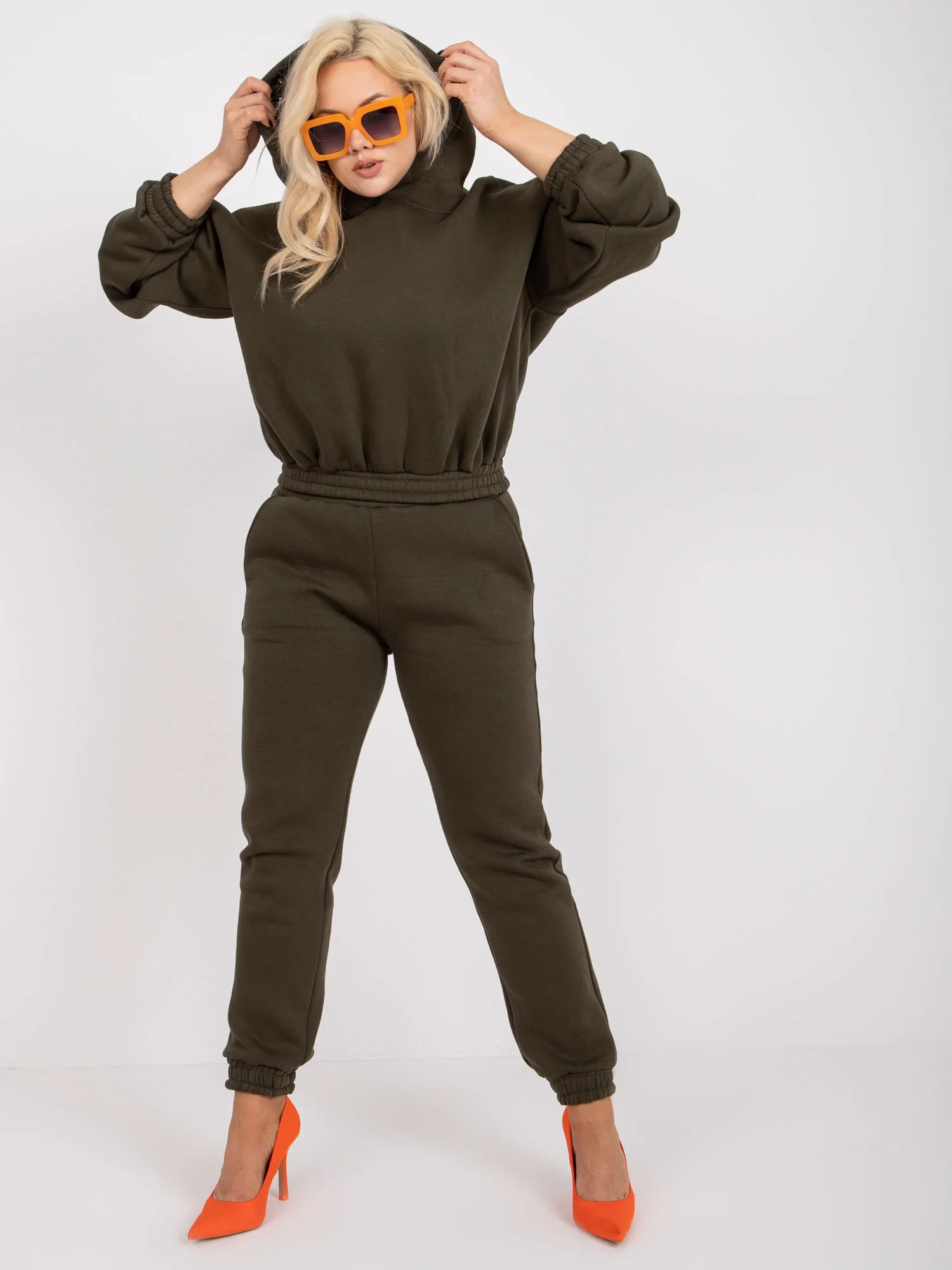Modelka má na sobě velikost XL. Rozměry modelky: výška 172 cm, prsa 103 cm, pas 73 cm, boky 103 cm.