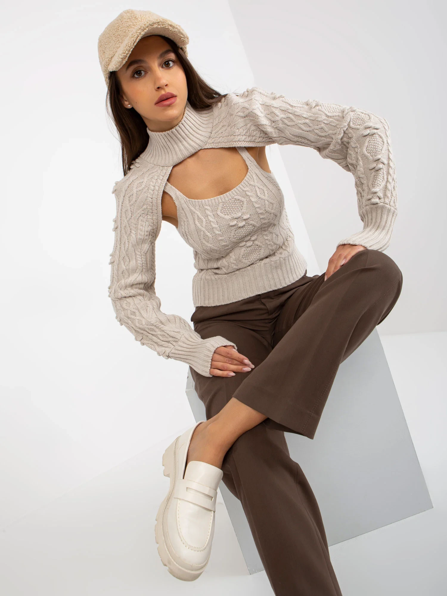 Modelka má na sobě jednu velikost. Rozměry modelky: výška 172 cm, poprsí 88 cm, pas 63 cm, boky 92 cm.