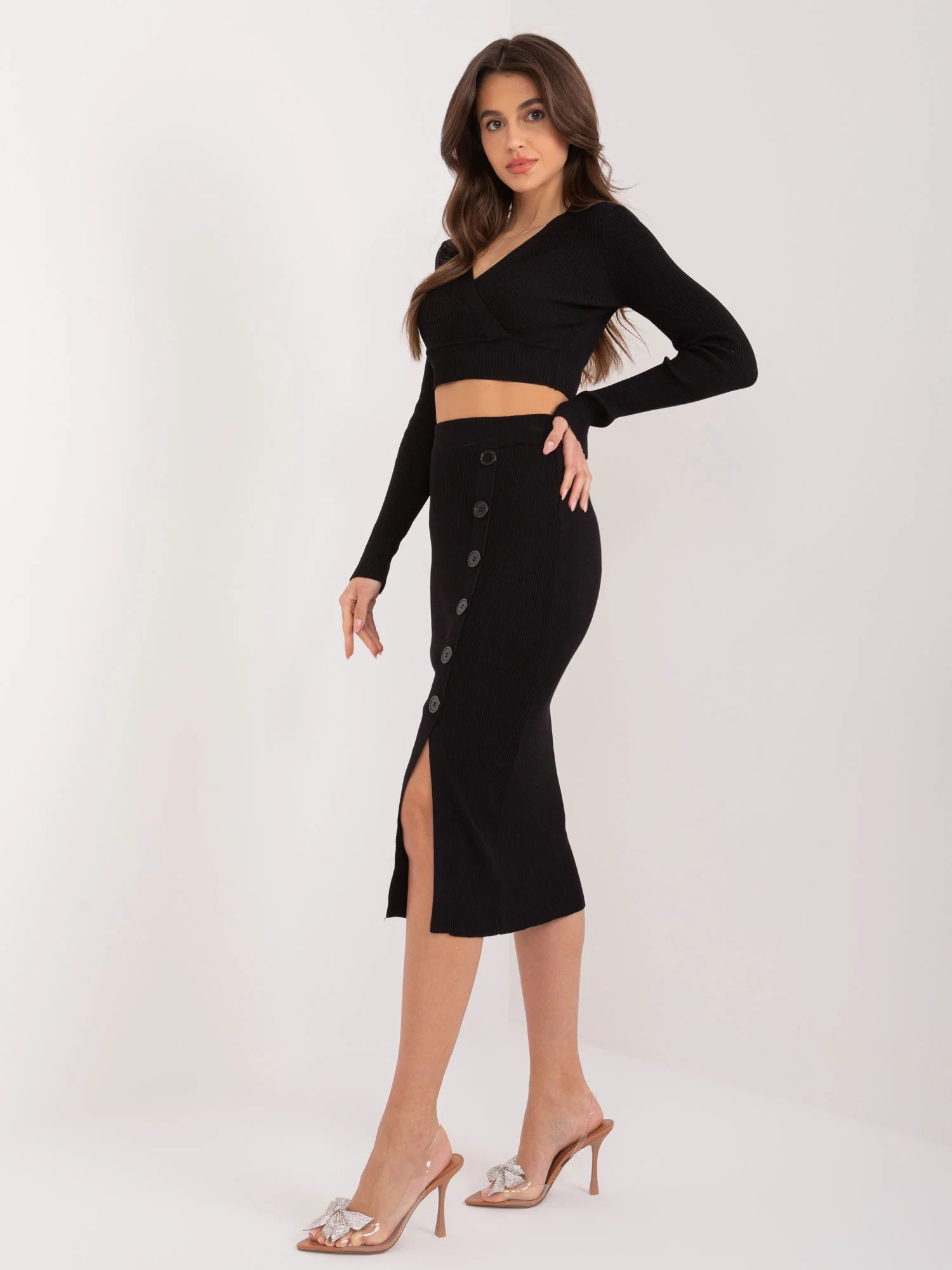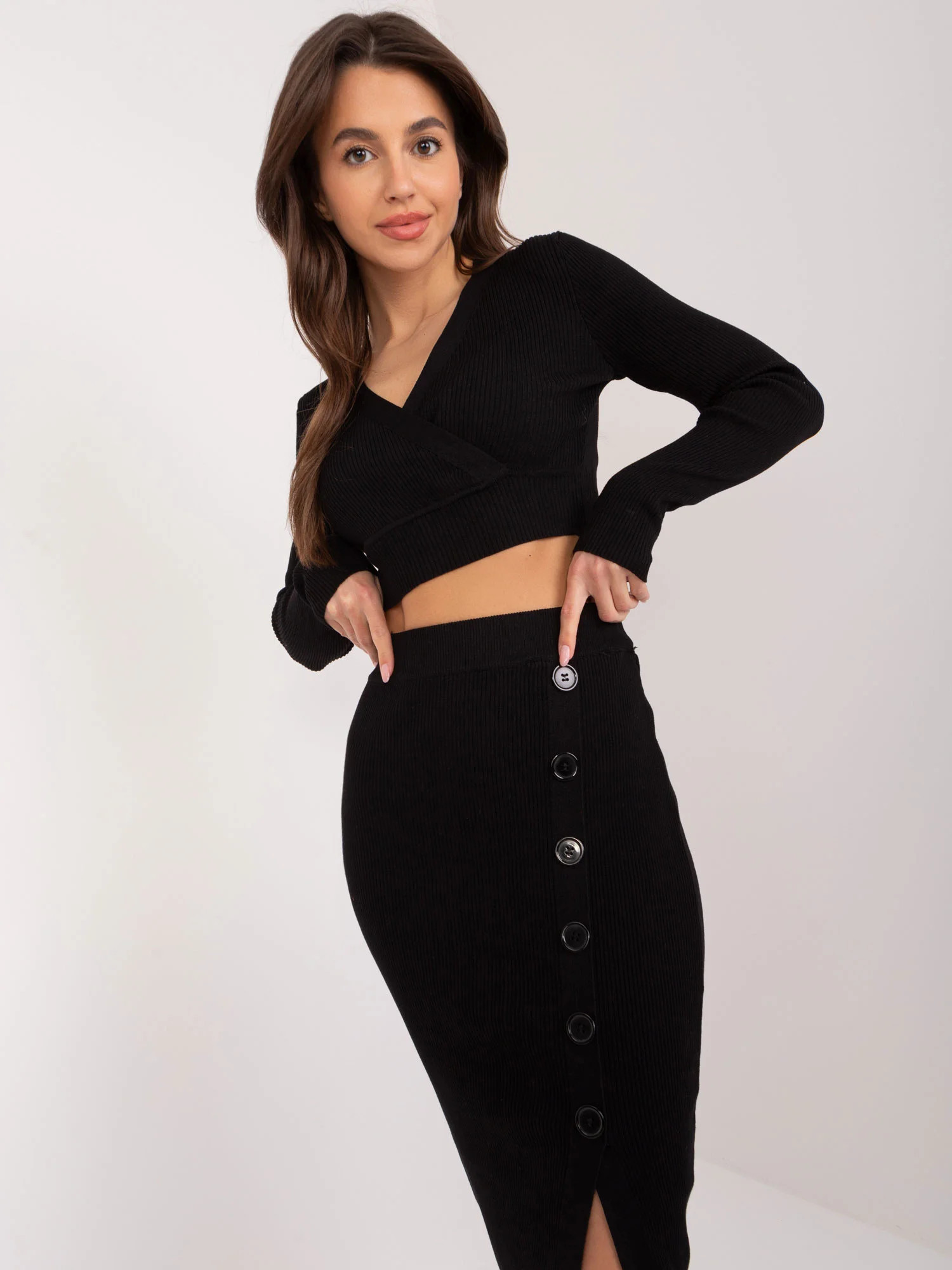 Modelka má na sobě jednu velikost. Rozměry modelky: výška 172 cm, poprsí 88 cm, pas 63 cm, boky 92 cm.