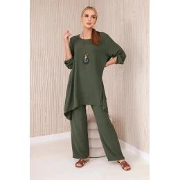 Italská dvoudílná souprava skládající se z rozšířené halenky a kalhot je elegantní souprava, která dodá kouzlo a styl každému stylu. Rozevlátá halenka dodává jemnou ženskost, zvýrazňuje postavu a zároveň zajišťuje volnost pohybu. Klasický střih kalhot dokonale ladí s elegantní halenkou a tvoří tak ucelený a stylový celek. Přívěsek ve tvaru klíče je navíc okouzlujícím detailem, který dodává této sadě originalitu a charakter a vytváří harmonickou kompozici. Jde o elegantní doplněk, který zdůrazňuje jedinečnost a smysl pro detail v celém stylingu. Tato italská souprava je ideální pro mnoho příležitostí, od obchodních schůzek až po romantická rande. Toto je rafinovaná volba pro lidi, kteří oceňují eleganci a pohodlí v jednom. Velikost je univerzální a padne ženám, které nosí velikost S, M nebo L.