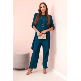 Italská dvoudílná souprava skládající se z rozšířené halenky a kalhot je elegantní souprava, která dodá kouzlo a styl každému stylu. Rozevlátá halenka dodává jemnou ženskost, zvýrazňuje postavu a zároveň zajišťuje volnost pohybu. Klasický střih kalhot dokonale ladí s elegantní halenkou a tvoří tak ucelený a stylový celek. Přívěsek ve tvaru klíče je navíc okouzlujícím detailem, který dodává této sadě originalitu a charakter a vytváří harmonickou kompozici. Jde o elegantní doplněk, který zdůrazňuje jedinečnost a smysl pro detail v celém stylingu. Tato italská souprava je ideální pro mnoho příležitostí, od obchodních schůzek až po romantická rande. Toto je rafinovaná volba pro lidi, kteří oceňují eleganci a pohodlí v jednom. Velikost je univerzální a padne ženám, které nosí velikost S, M nebo L.