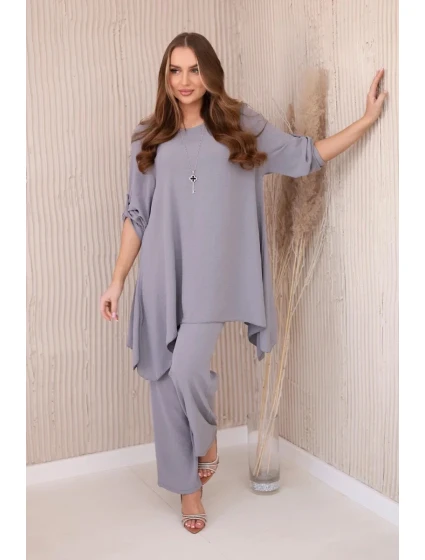 Italská dvoudílná souprava skládající se z rozšířené halenky a kalhot je elegantní souprava, která dodá kouzlo a styl každému stylu. Rozevlátá halenka dodává jemnou ženskost, zvýrazňuje postavu a zároveň zajišťuje volnost pohybu. Klasický střih kalhot dokonale ladí s elegantní halenkou a tvoří tak ucelený a stylový celek. Přívěsek ve tvaru klíče je navíc okouzlujícím detailem, který dodává této sadě originalitu a charakter a vytváří harmonickou kompozici. Jde o elegantní doplněk, který zdůrazňuje jedinečnost a smysl pro detail v celém stylingu. Tato italská souprava je ideální pro mnoho příležitostí, od obchodních schůzek až po romantická rande. Toto je rafinovaná volba pro lidi, kteří oceňují eleganci a pohodlí v jednom. Velikost je univerzální a padne ženám, které nosí velikost S, M nebo L.