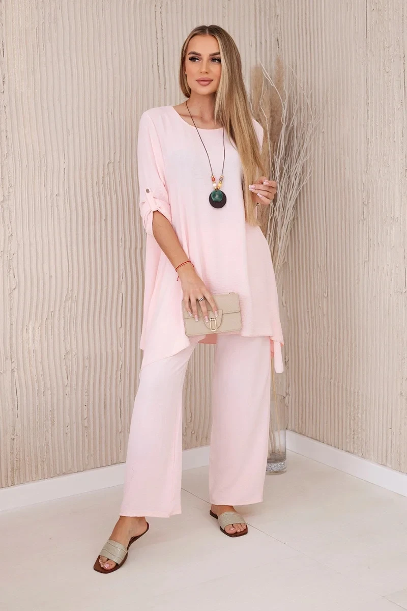 Sada halenky + kalhot s přívěskem světle pudrově růžová