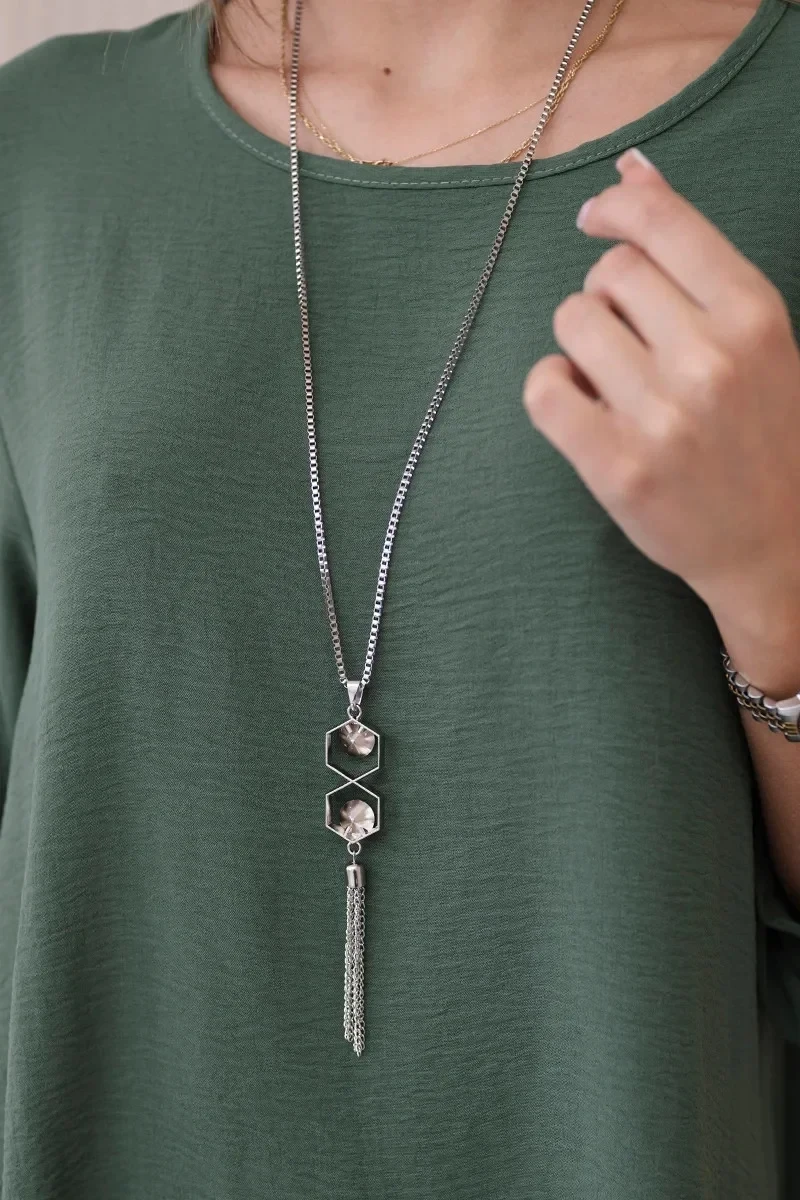 Italská dvoudílná souprava skládající se z rozšířené halenky a kalhot je elegantní souprava, která dodá kouzlo a styl každému stylu. Rozevlátá halenka dodává jemnou ženskost, zvýrazňuje postavu a zároveň zajišťuje volnost pohybu. Klasický střih kalhot dokonale ladí s elegantní halenkou a tvoří tak ucelený a stylový celek. Přívěsek ve tvaru klíče je navíc okouzlujícím detailem, který dodává této sadě originalitu a charakter a vytváří harmonickou kompozici. Jde o elegantní doplněk, který zdůrazňuje jedinečnost a smysl pro detail v celém stylingu. Tato italská souprava je ideální pro mnoho příležitostí, od obchodních schůzek až po romantická rande. Toto je rafinovaná volba pro lidi, kteří oceňují eleganci a pohodlí v jednom. Velikost je univerzální a padne ženám, které nosí velikost S, M nebo L.