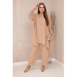 Italská dvoudílná souprava skládající se z rozšířené halenky a kalhot je elegantní souprava, která dodá kouzlo a styl každému stylu. Rozevlátá halenka dodává jemnou ženskost, zvýrazňuje postavu a zároveň zajišťuje volnost pohybu. Klasický střih kalhot dokonale ladí s elegantní halenkou a tvoří tak ucelený a stylový celek. Přívěsek ve tvaru klíče je navíc okouzlujícím detailem, který dodává této sadě originalitu a charakter a vytváří harmonickou kompozici. Jde o elegantní doplněk, který zdůrazňuje jedinečnost a smysl pro detail v celém stylingu. Tato italská souprava je ideální pro mnoho příležitostí, od obchodních schůzek až po romantická rande. Toto je rafinovaná volba pro lidi, kteří oceňují eleganci a pohodlí v jednom. Velikost je univerzální a padne ženám, které nosí velikost S, M nebo L.