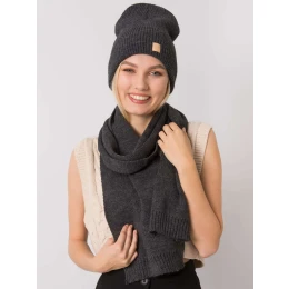 RUE PARIS Tmavě šedá zimní souprava s čepicí a šálou Čepice made in Poland