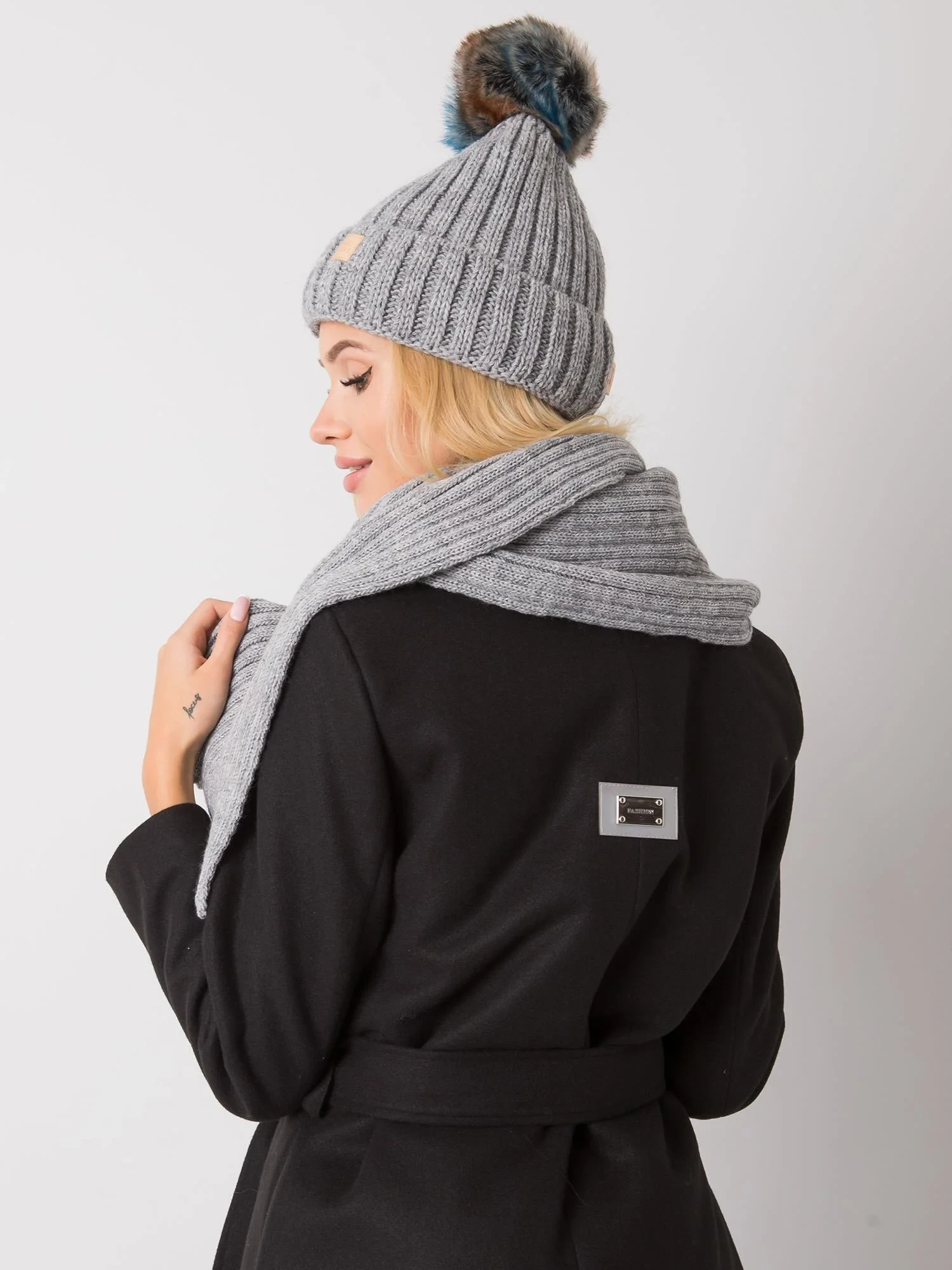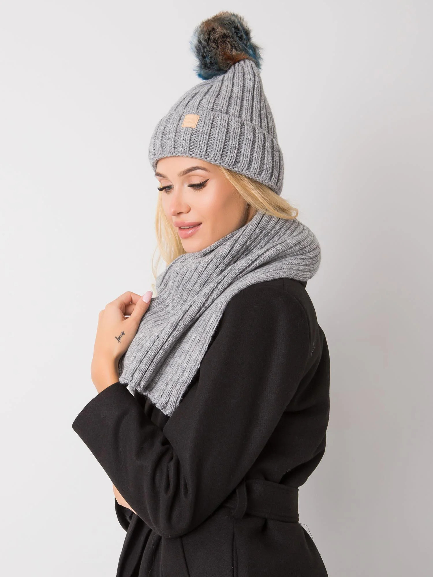 RUE PARIS Šedý zimní set čepice a šály Polský výrobek