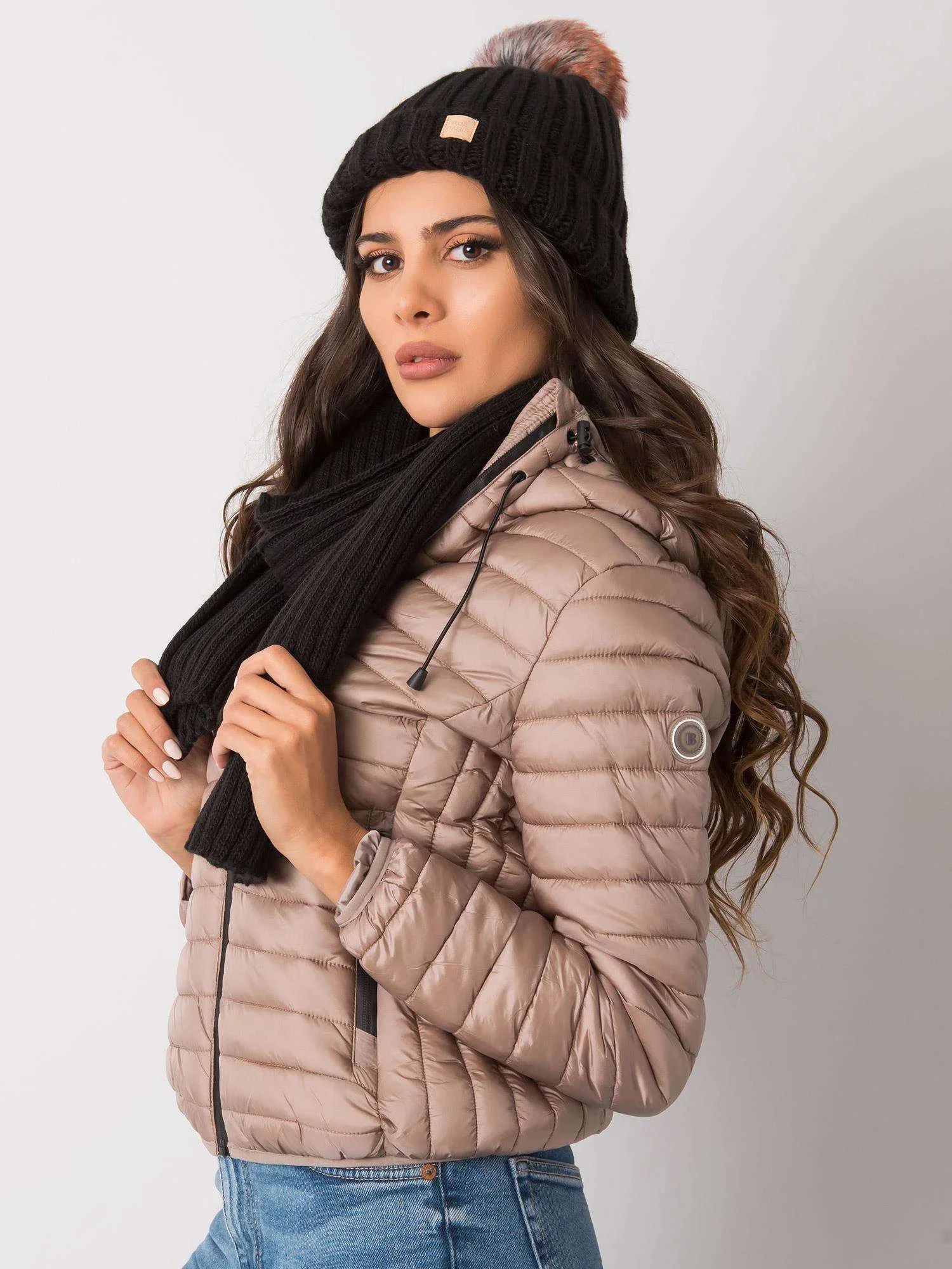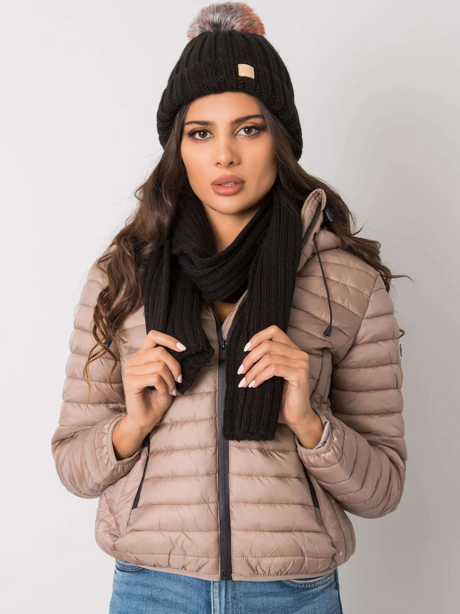 RUE PARIS Černý zimní set čepice a šály Polský výrobek