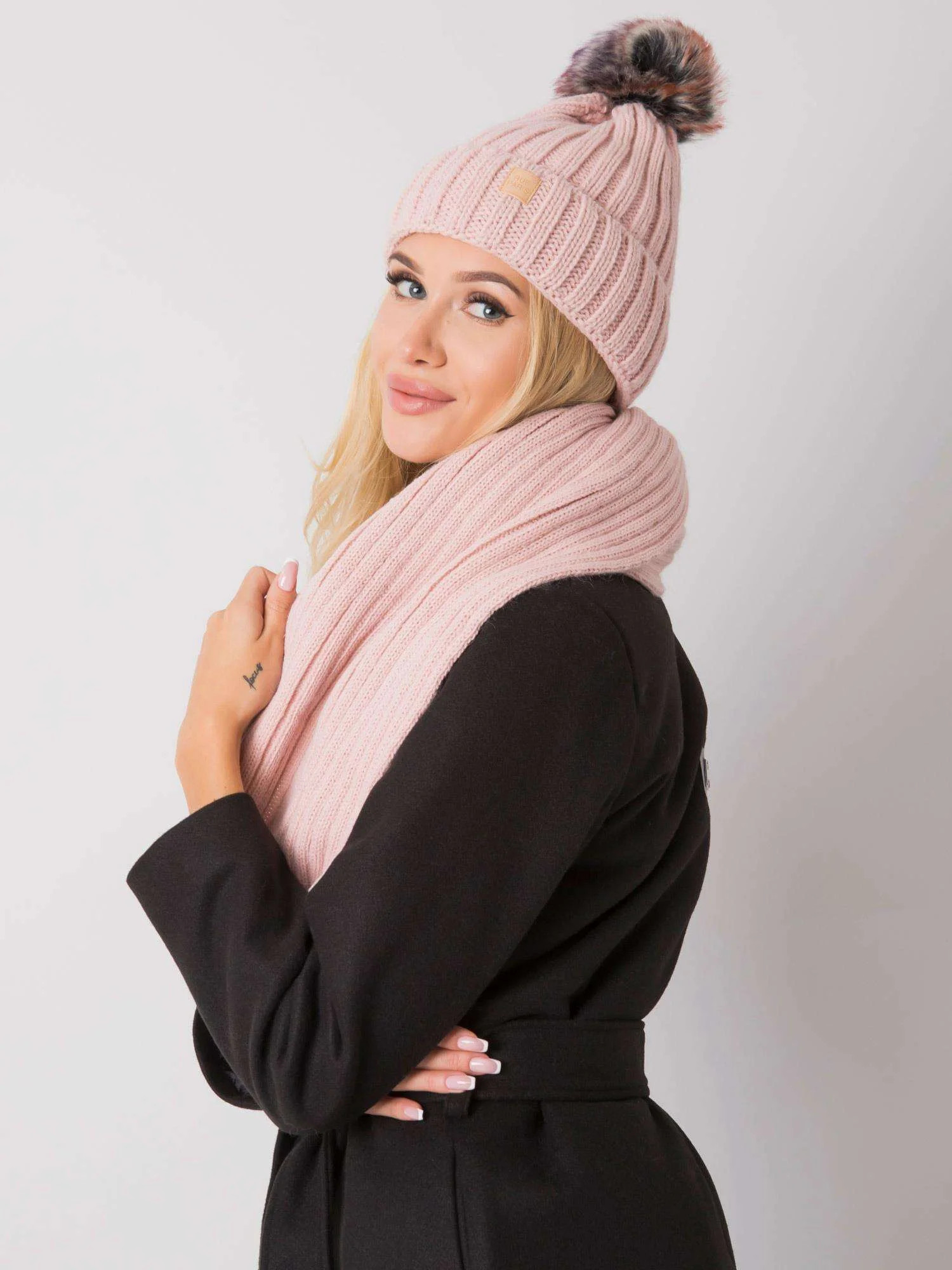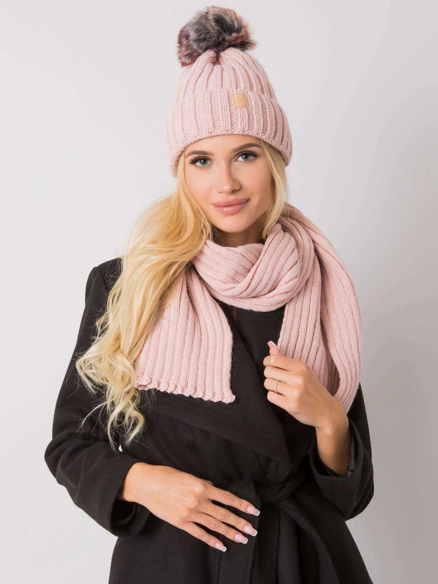 RUE PARIS Světle růžový zimní set čepice a šály Polská výroba