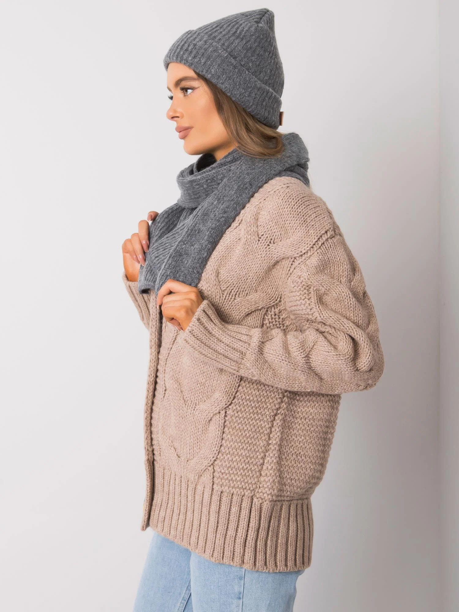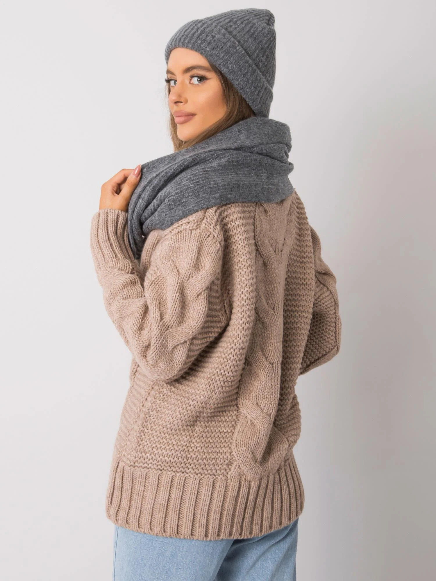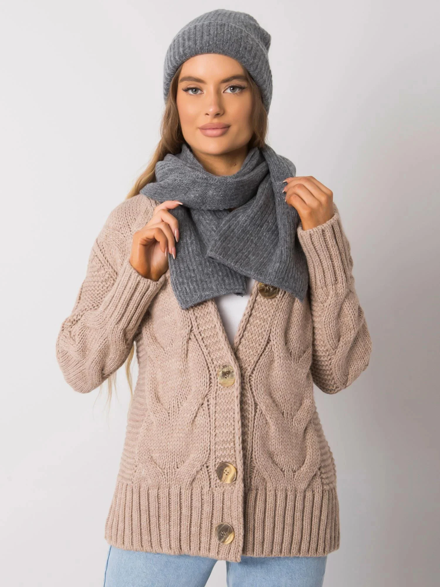 RUE PARIS Tmavě šedá pletená zimní souprava Polský výrobek