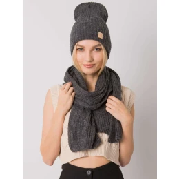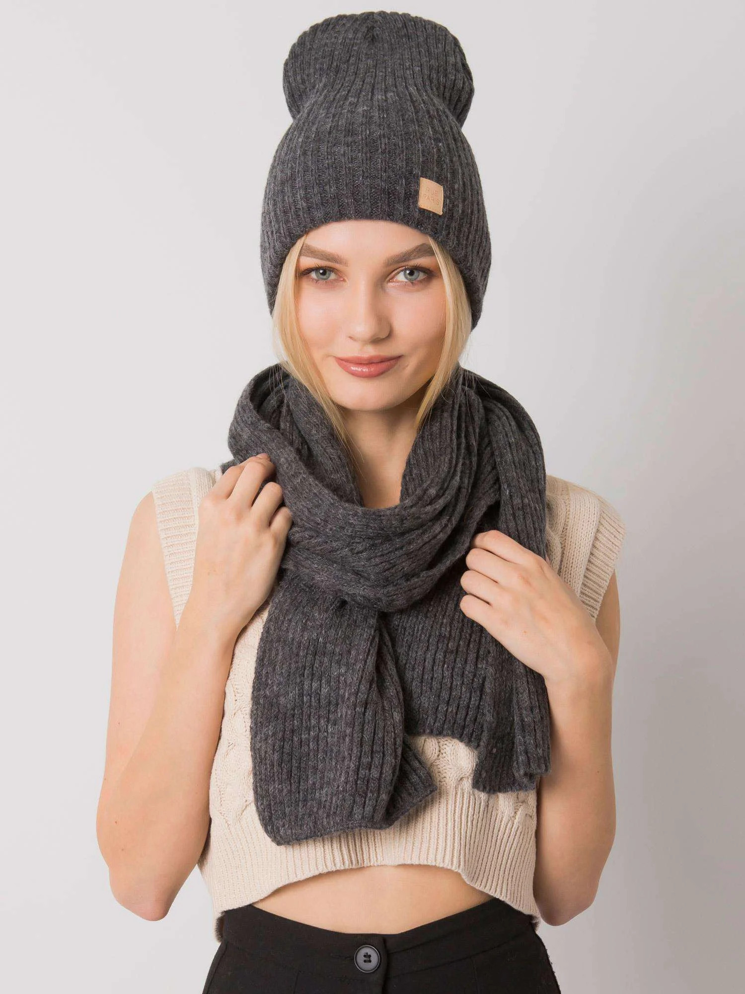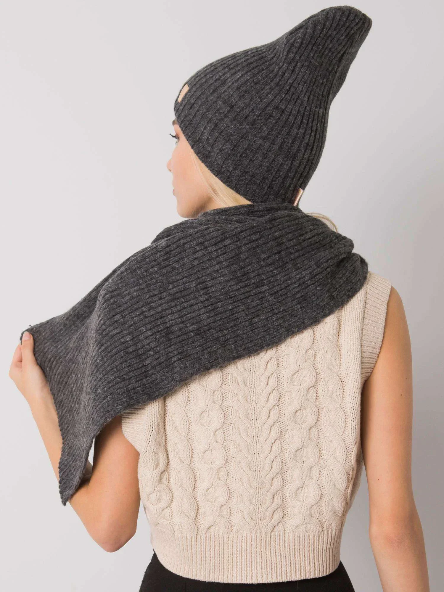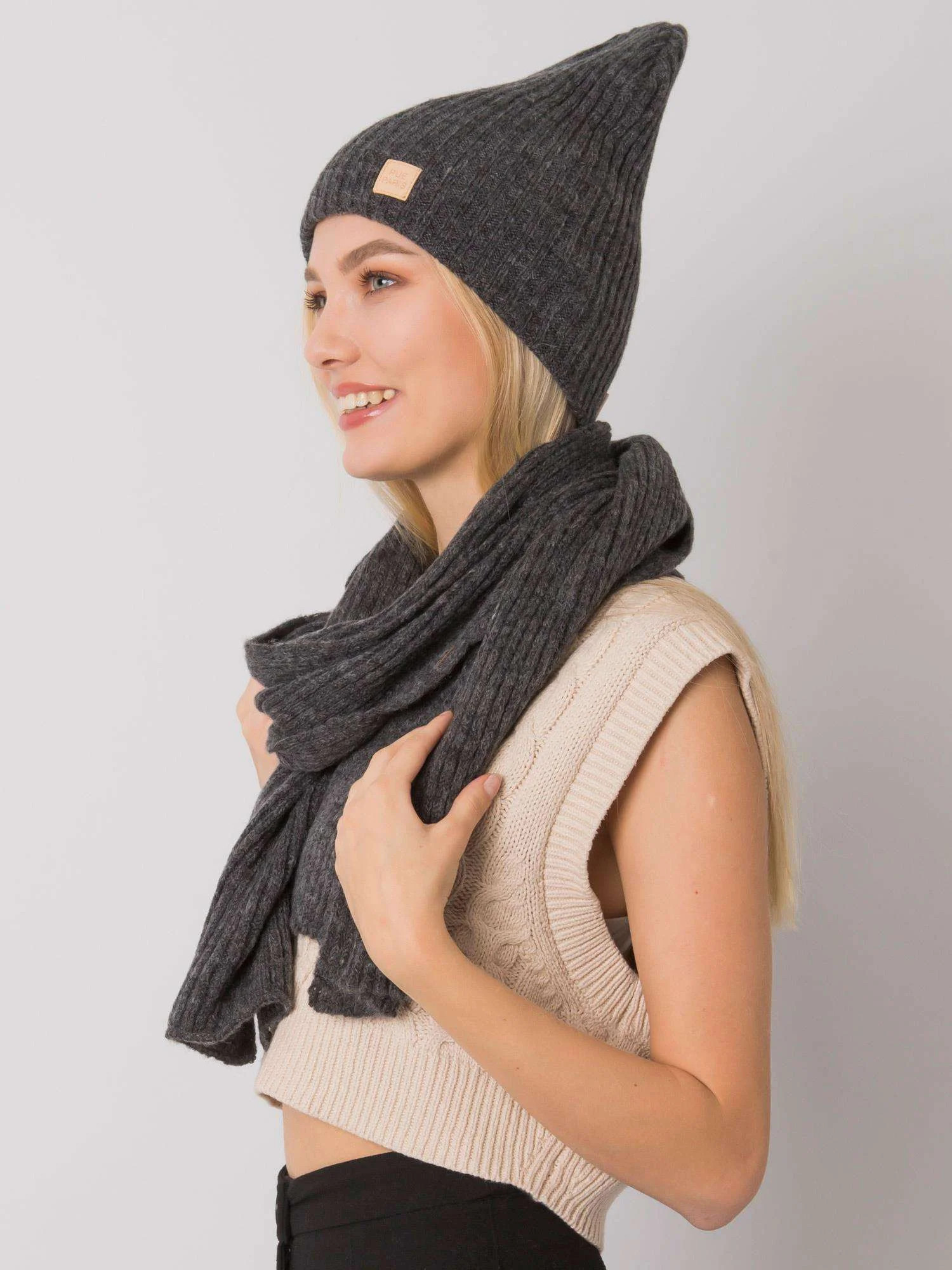 Tmavě šedý zimní set čepice a šály RUE PARIS polské výroby
