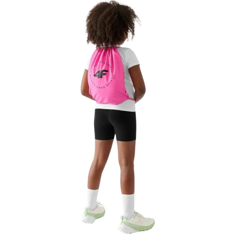 Komplet dla dziewczynki 4F zawiera bawełnianą koszulkę, spodenki i worek na buty. T-shirt ma taśmę na karku od wewnętrznej strony, która chroni przed podrażnieniami. Spodenki posiadają rozciągliwą taśmę w pasie pozwalającą na wygodne dopasowanie bez ucisku. Koszulkę i spodenki zyskały regularny krój. Plecak-worek: nadruk na froncie, posiada szelki ze sznurka, które pełnią rolę ściągacza. T-shirt:· Okrągły dekolt· Wykonany z elastycznej, bawełnianej dzianiny Spodenki:· Wykonane z lekkiej i elastycznej dzianiny· Elastyczna taśma w pasie, pozwala na wygodne dopasowanie bez ucisku Plecak-worek:· Nadruk na froncie· Posiada szelki ze sznurka, które pełnią rolę ściągacza· Uchwyt do zawieszenia worka.